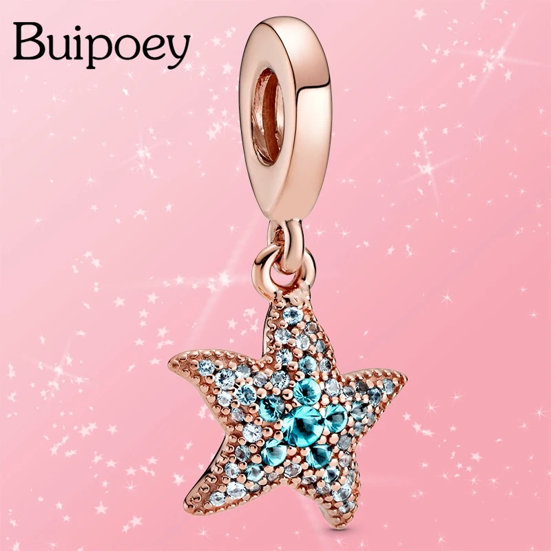 Buipoey, 2 шт., синий кристалл, серия Ocean, из бисера, розовое золото, морская звезда, подвеска, подходит для брендов, браслет, ожерелье, ювелирный аксессуар