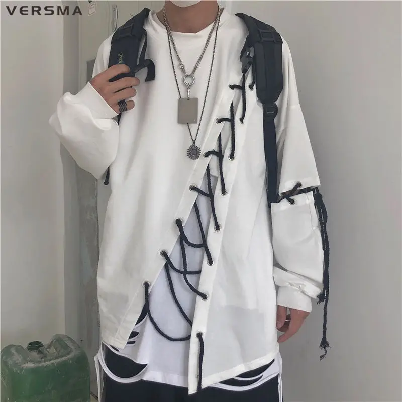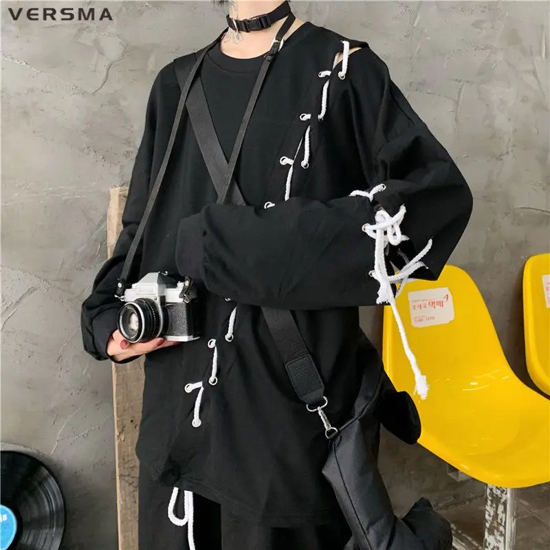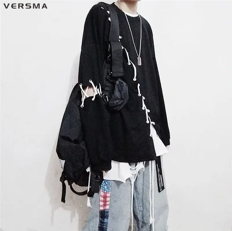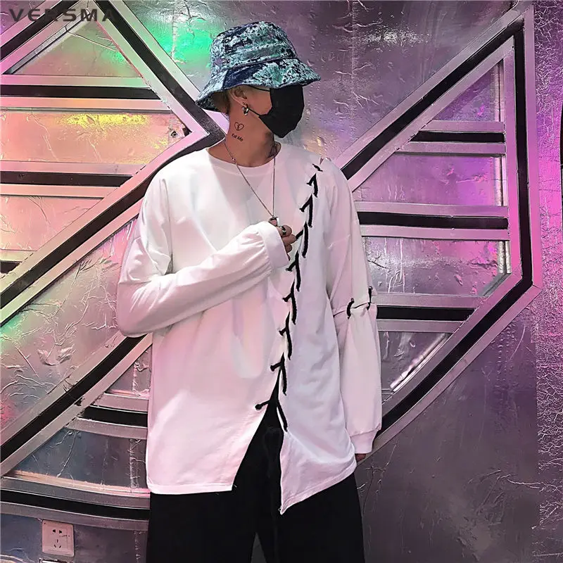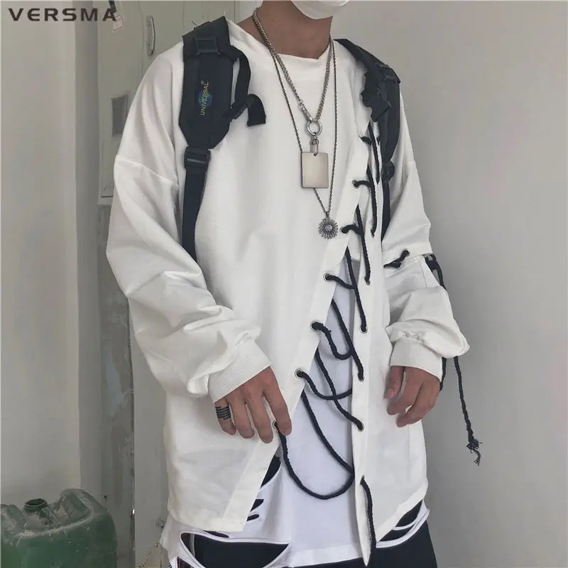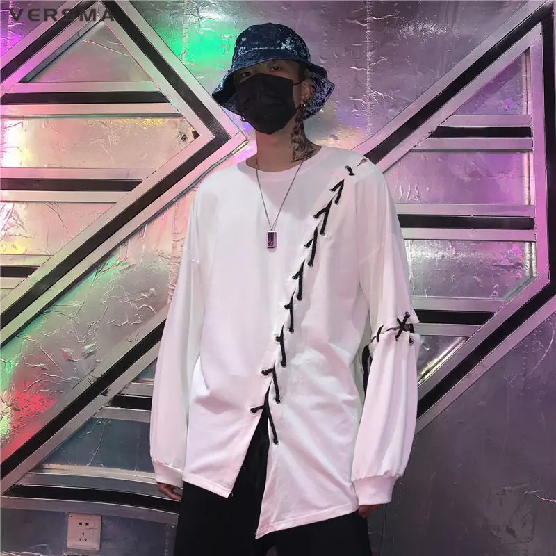 VERSMA в Корейском стиле Harajuku ленты в стиле пэчворк с длинным рукавом Футболка Мужчины осень в стиле хип-хоп Уличная одежда в винтажном стиле, в стиле унисекс, футболка для мужчин, Прямая поставка
