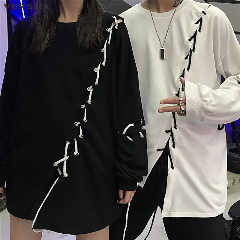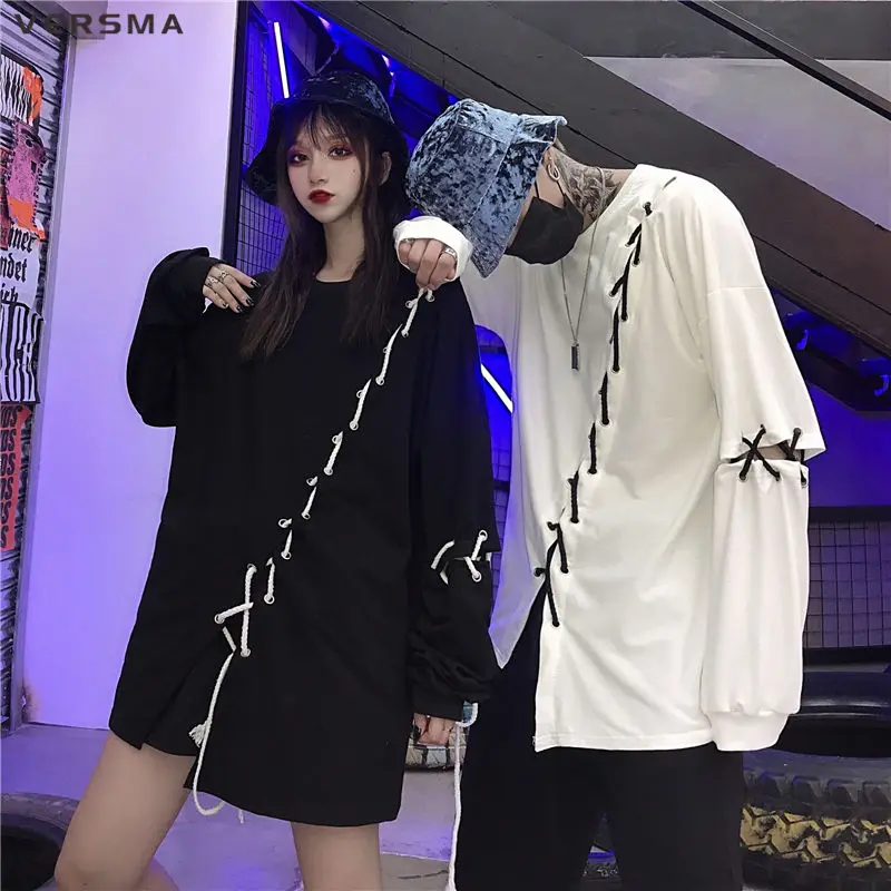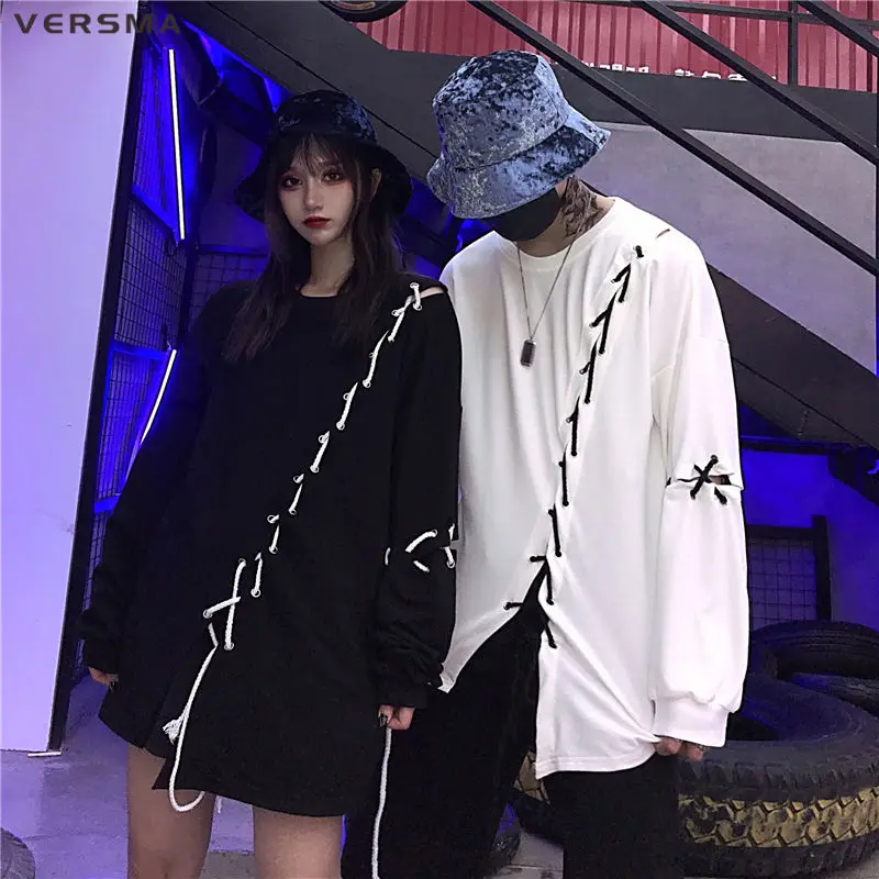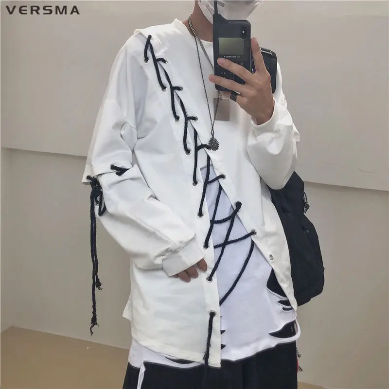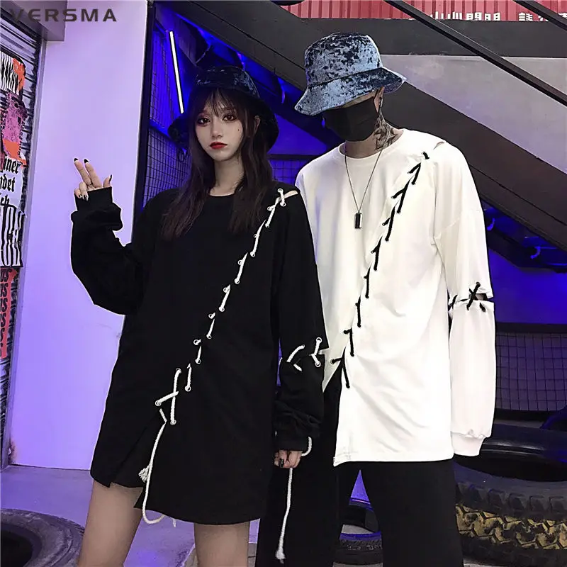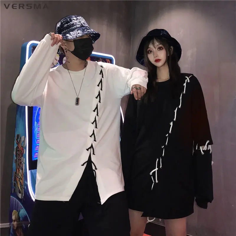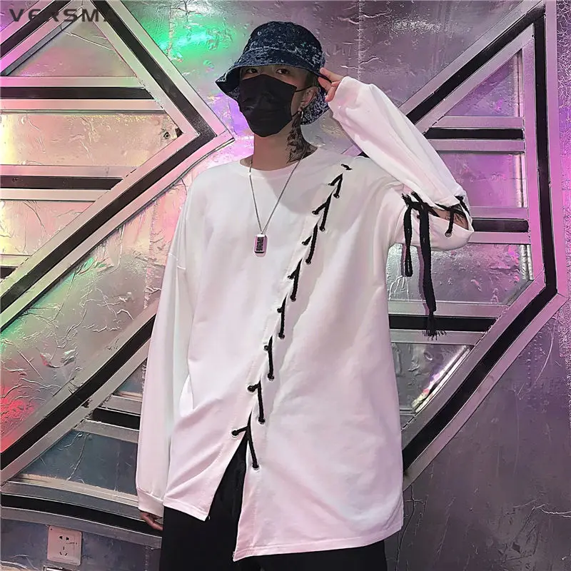 VERSMA в Корейском стиле Harajuku ленты в стиле пэчворк с длинным рукавом Футболка Мужчины осень в стиле хип-хоп Уличная одежда в винтажном стиле, в стиле унисекс, футболка для мужчин, Прямая поставка