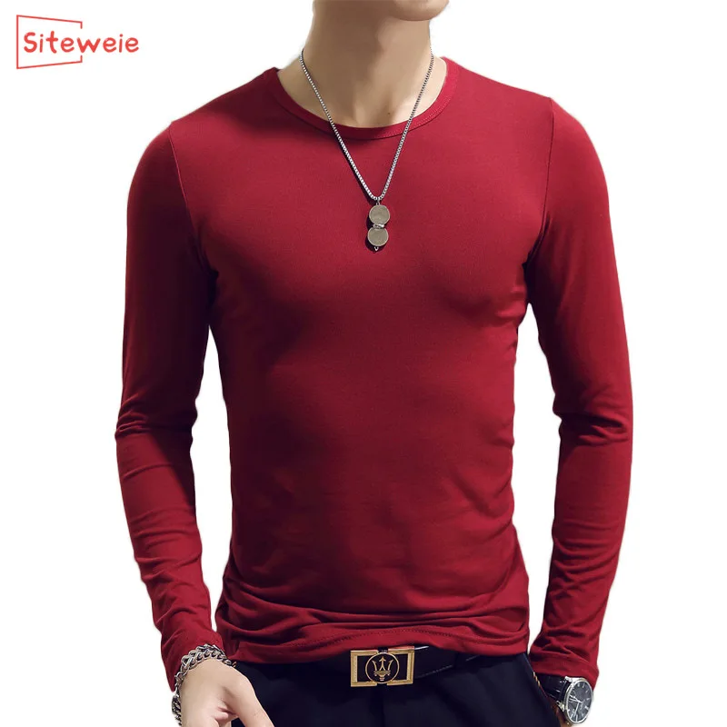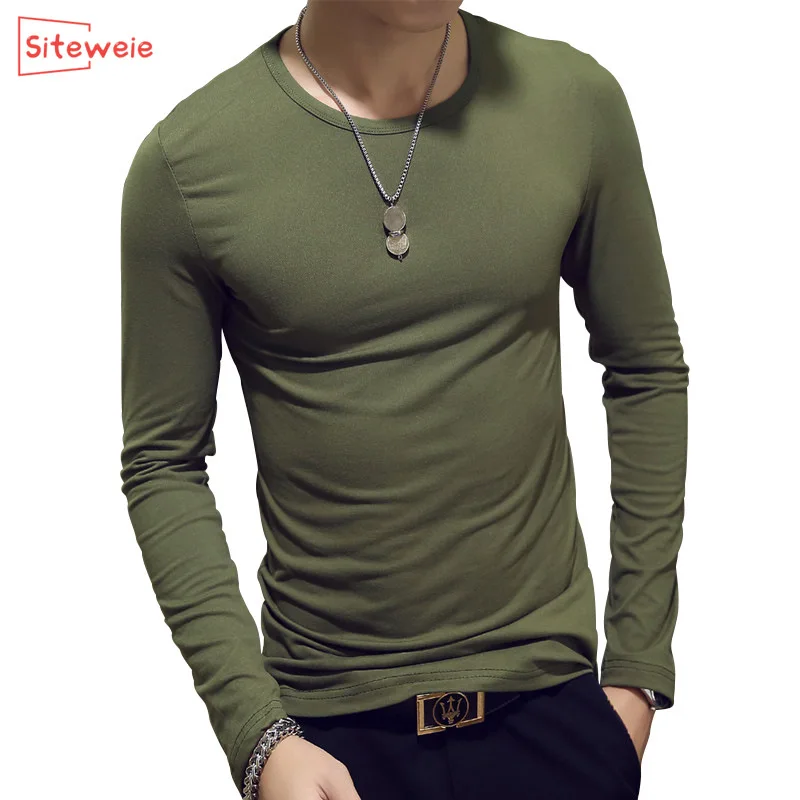 Футболка SITEWEIE G205 мужская с длинным рукавом, стильная тенниска с V-образным вырезом, майка из полиэстера, Однотонная рубашка, весна-осень