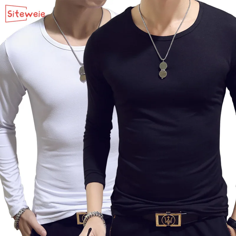 Один раз 2021 лайкра Slim Fit Мужская футболка с длинным рукавом вы...