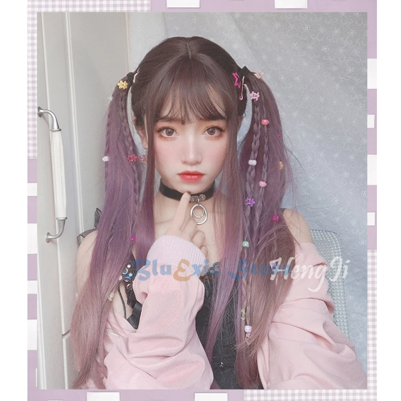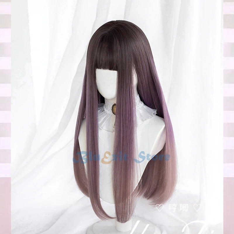 Парик Лолита женский с длинными волосами, вьющиеся прямые градиентные фиолетовые челки для взрослых, шикарная повседневная одежда для косплея, Харадзюку