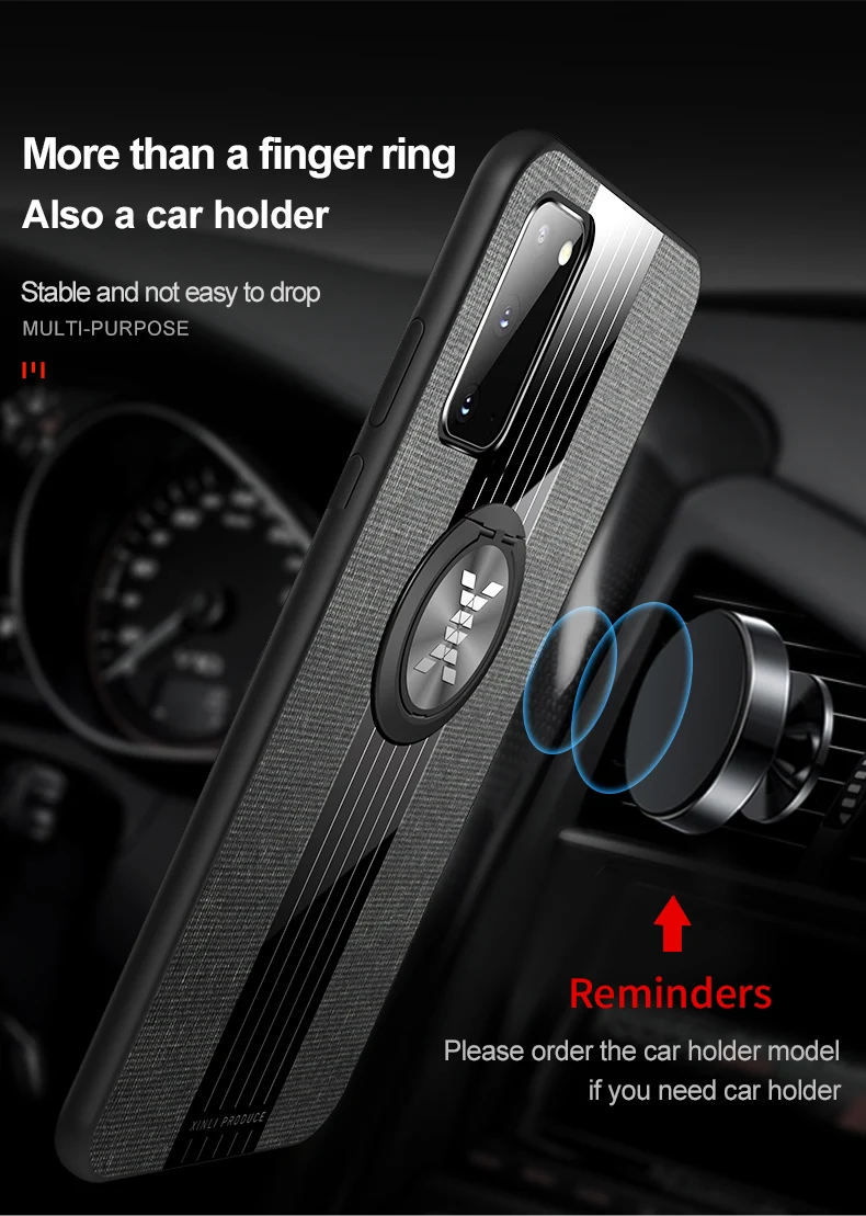 Чехол с кольцом-держателем для POCO X3 Pro, тканевая текстура, твер...
