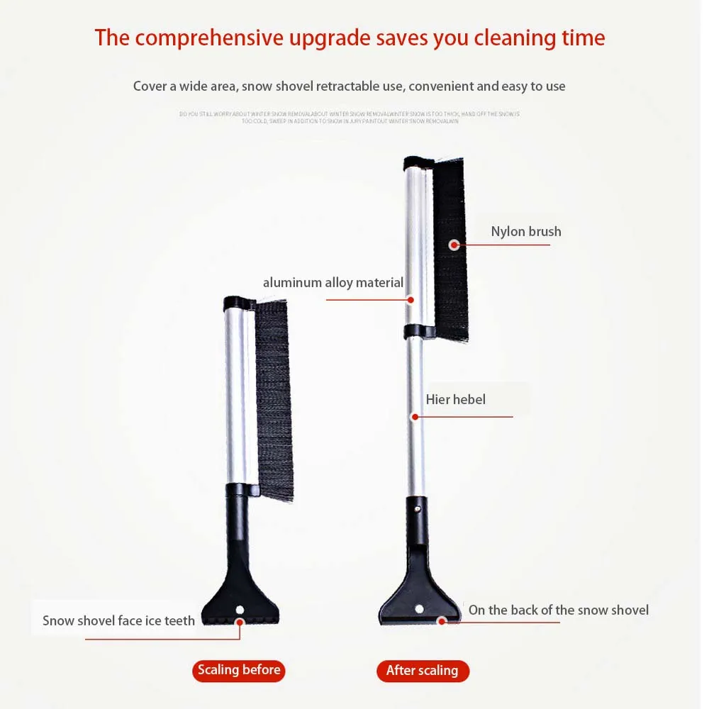 ● Выдвижной рычаг из алюминиевого сплава, свободно отрегулировать длину, легко чистить лед и снег, подходит для различных моделей