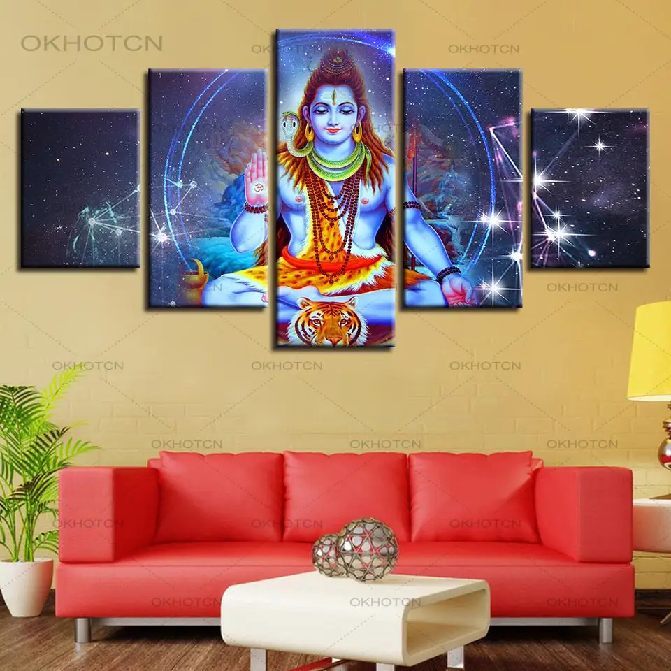 Картина HD Печать Декор для гостиной настенное искусство 5 штук индуийский Бог лорд Шива и созвездия пейзаж модульная Картина на холсте