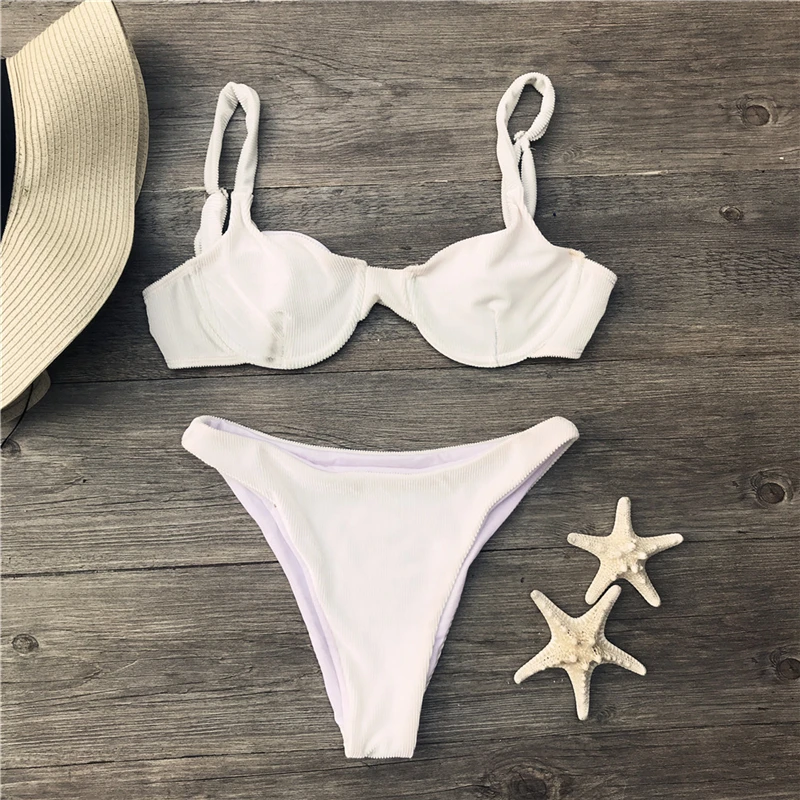 Сексуальный комплект бикини в рубчик с треугольными чашечками, Одно...