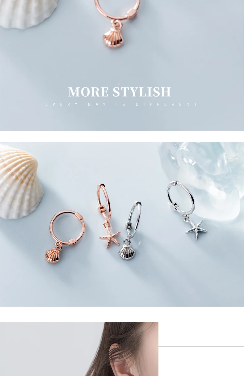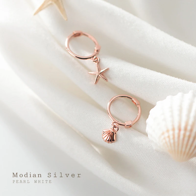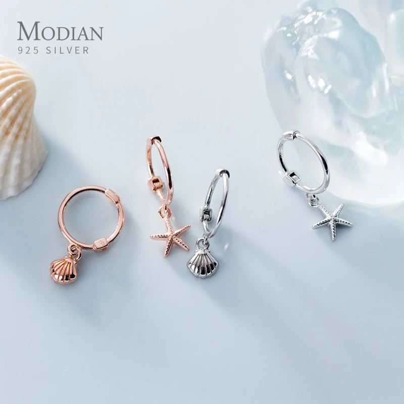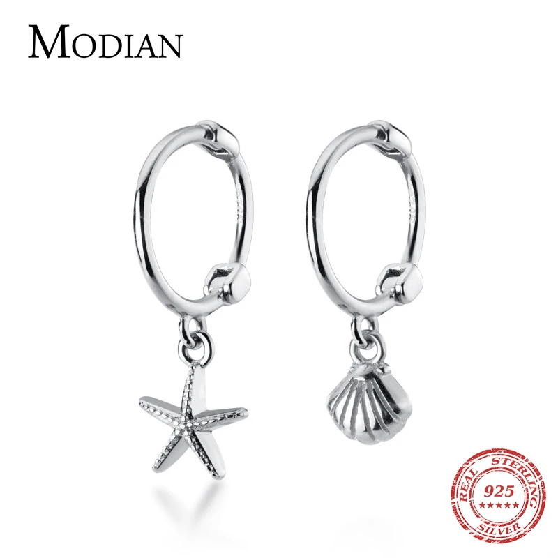 Modian новый 925 стерлингового серебра роскошный Морская звезда оболочка Асимметричная Хооп Серьги для женщин простой свадьбы серьги для женщин, хорошее ювелирное изделие, подарок