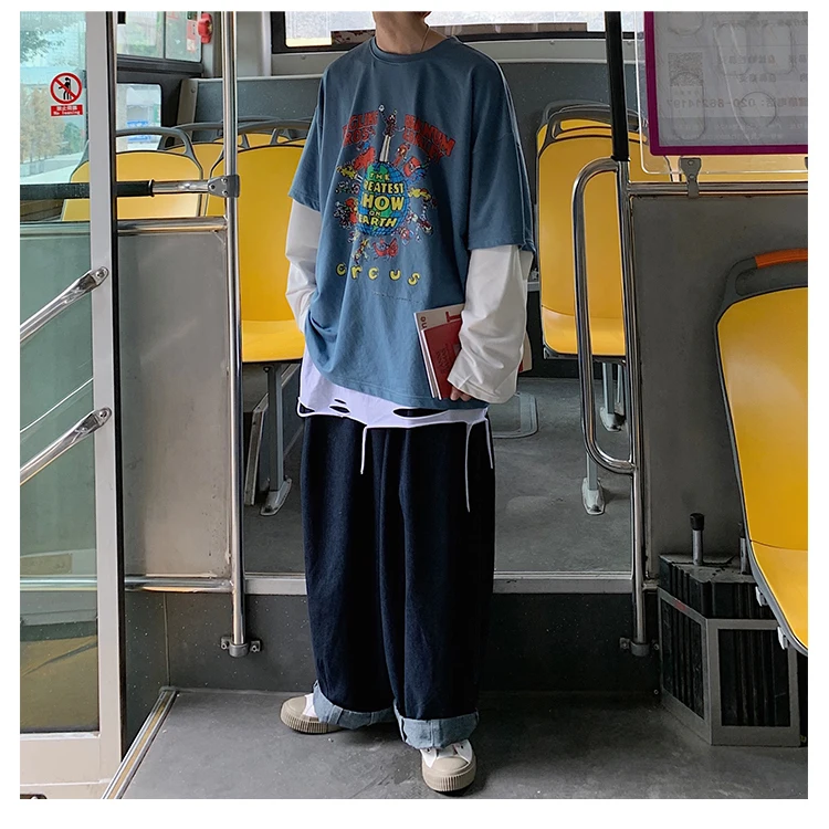 Брюки мужские мешковатые джинсовые в стиле Харадзюку, с завышенной ...