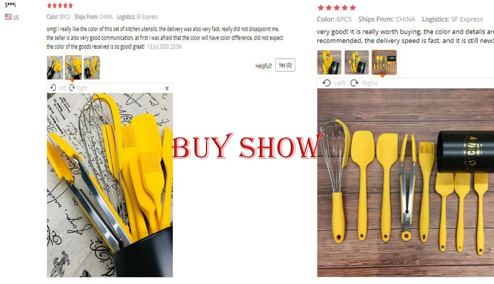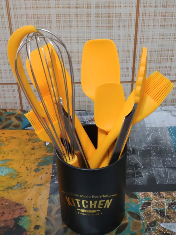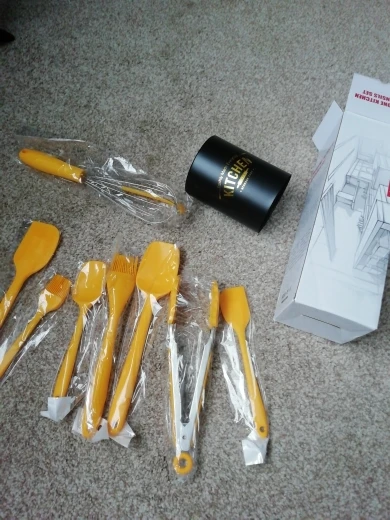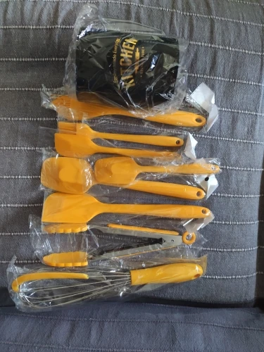 Весь набор кухонных принадлежностей действительно красивый. Цвет удобный и экономичный! Нет запаха. Я не могу дождаться стирки и готовиться к использованию.