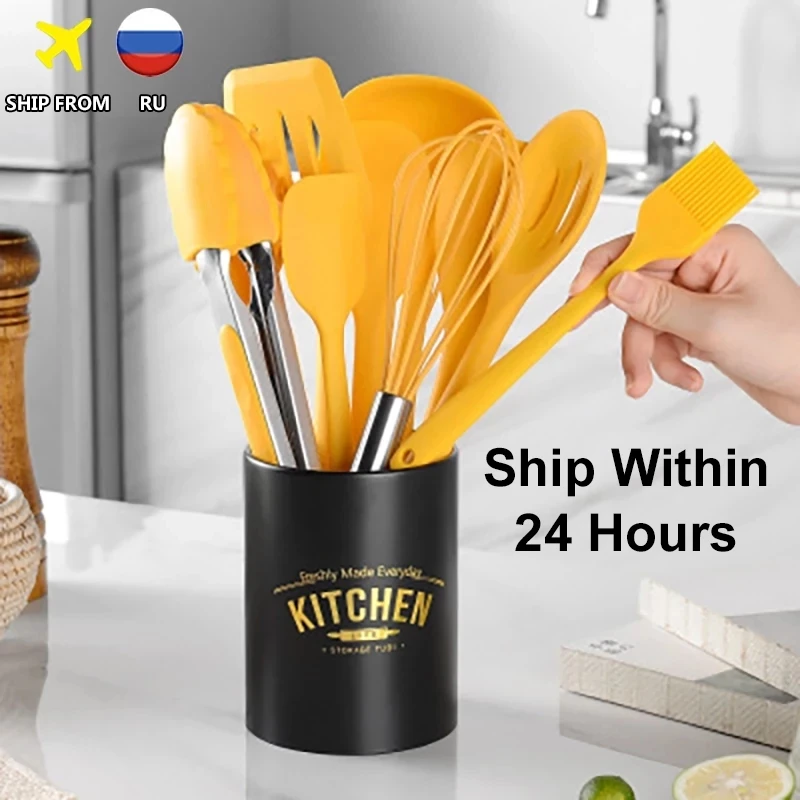 Набор кухонной посуды с силиконовой ручкой, антипригарная сковорода, силиконовый инструмент, специальная термостойкая лопатка, размешивание-ковш для жарки ложки