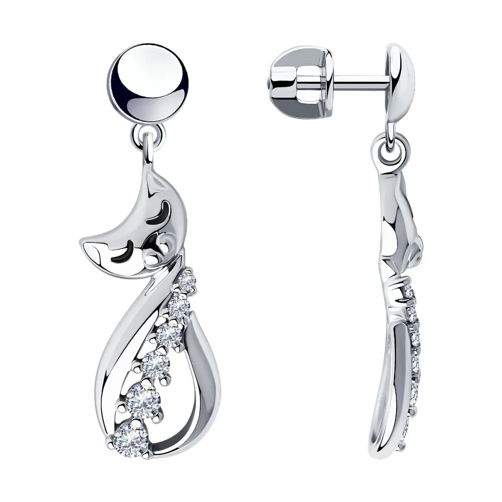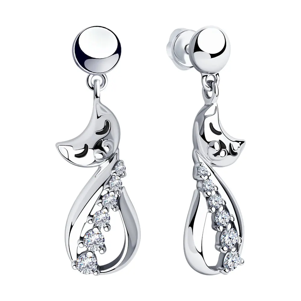 Серьги SOKOLOV из серебра с фианитами, Серебро, 925, Женские, Серьги 2022 тренд, Оригинальная продукция