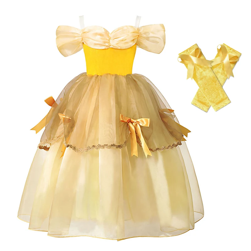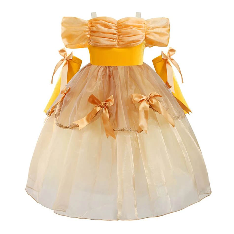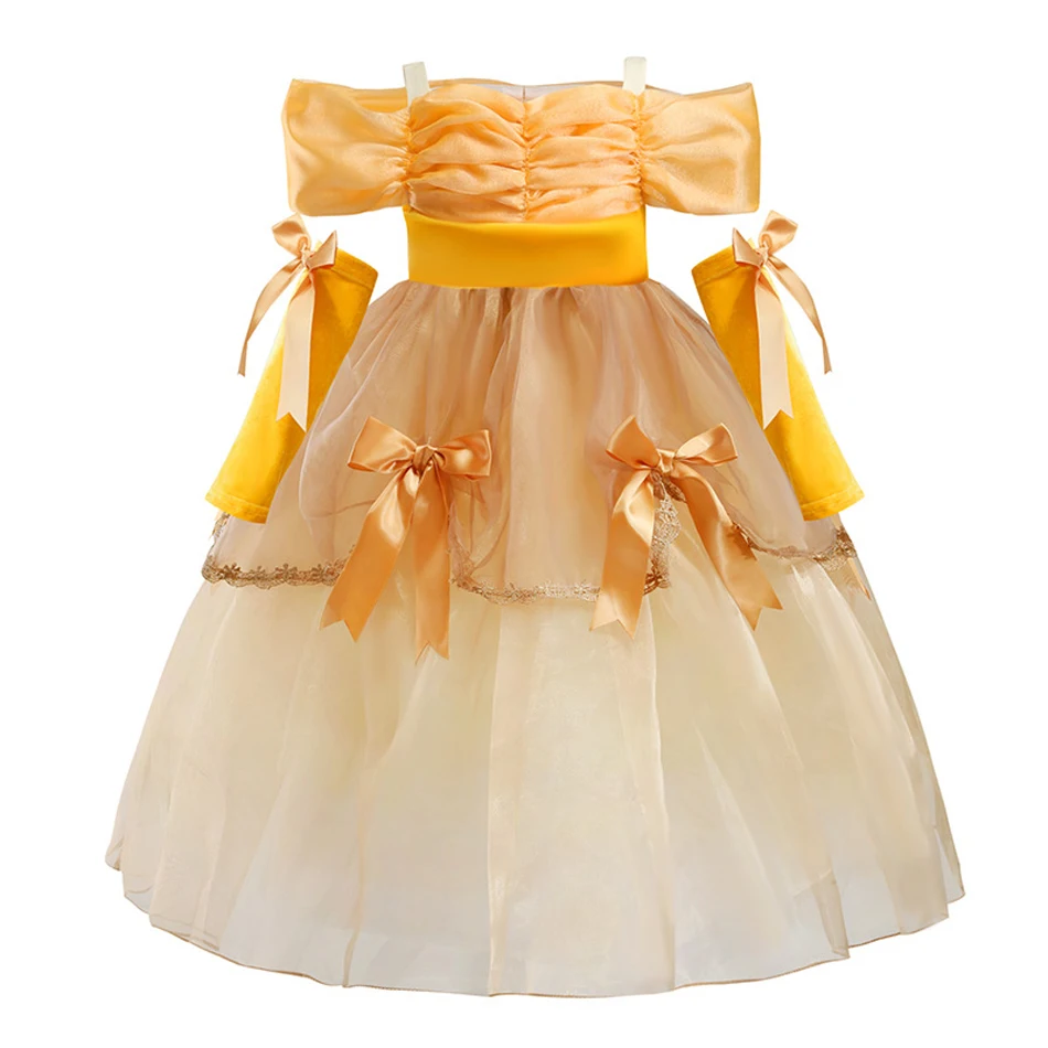 Для девочки "Принцесса Белль" платье для костюмированной вечеринки, костюм на день рождения вечерние одежда, детская одежда для Хэллоуина, длинное платье в пол, Спящая красавица Rella костюм