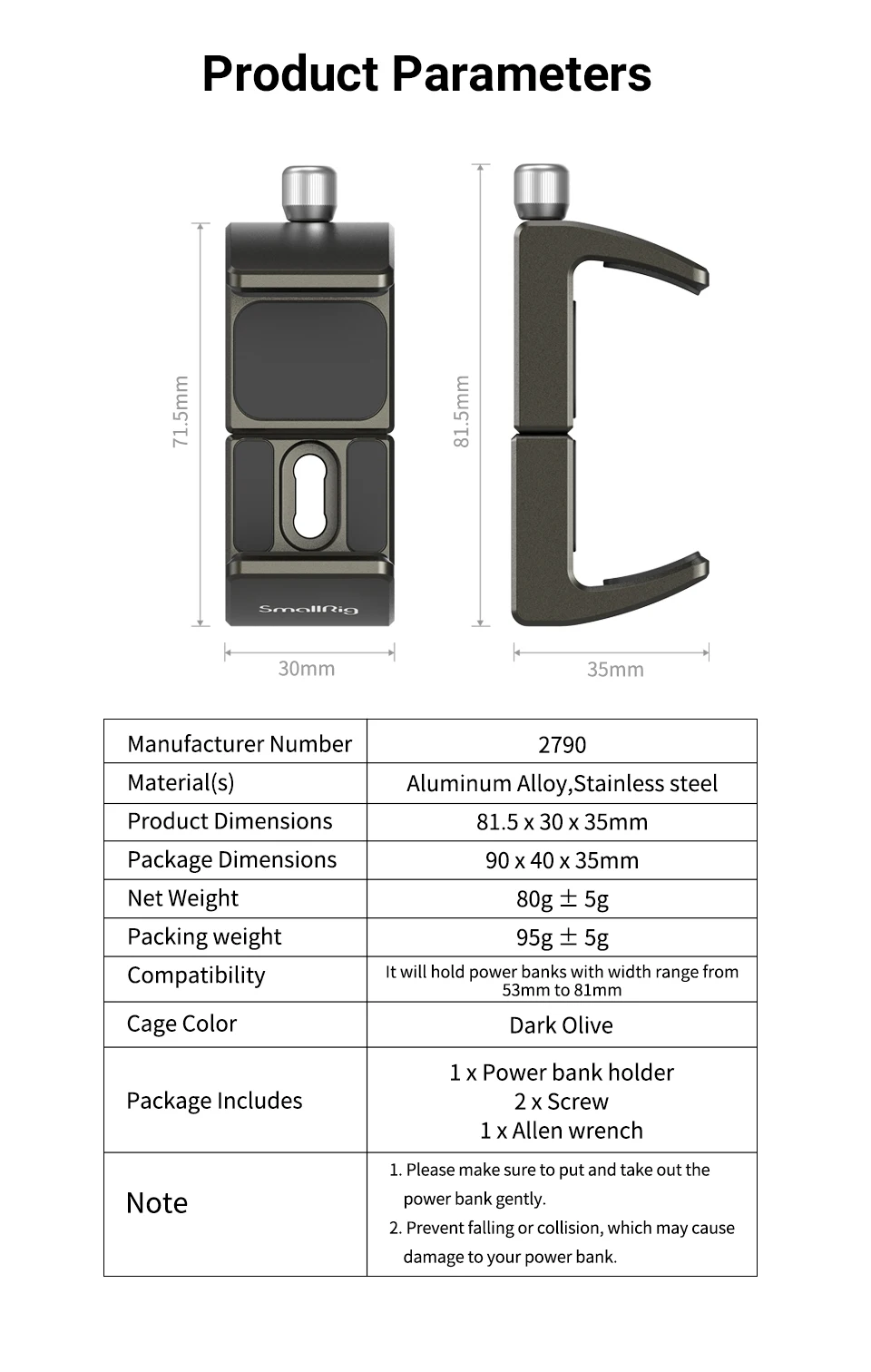 Универсальный держатель внешнего аккумулятора SmallRig, регулируемый, для внешнего аккумулятора шириной от 53 мм до 81 мм, для видеозаписи, видеосъемки 2790