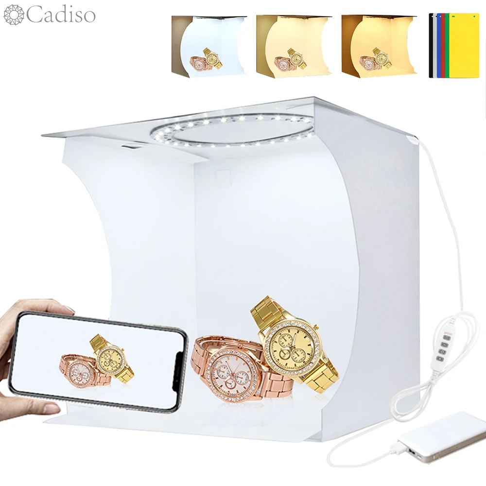 Светодиодный кольцевой мини-Лайтбокс Cadiso, складной портативный софтбокс для фотосъемки, Лайтбокс для фотостудии, тент для фотосъемки, комплект с 6 фонами