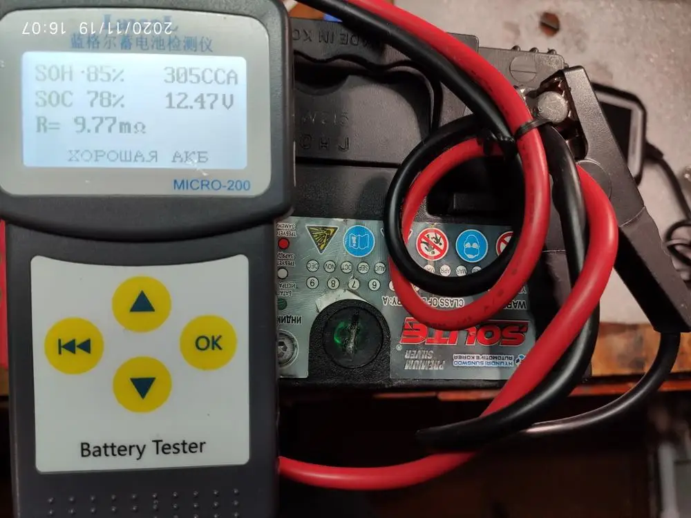 Привезли за два дня. Работает. Проверил десятилетний аккумулятор который снял со своей машины. Результаты на фото. Думаю вполне правильные. Крутил уже с трудом. Но заводил машину.