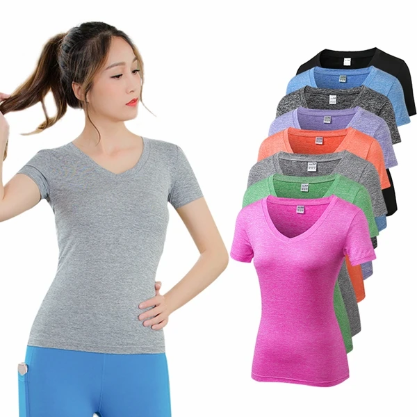 Новинка, спортивный Топ для женщин, Спортивная футболка для фитнеса, топы для йоги, женские топы с V-образным вырезом, быстросохнущие футболки для йоги и бега, большой размер 2xl, Топ