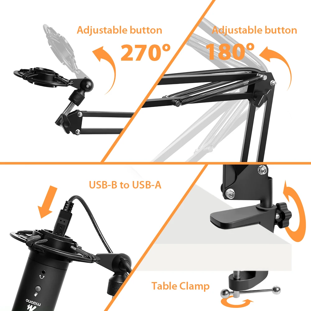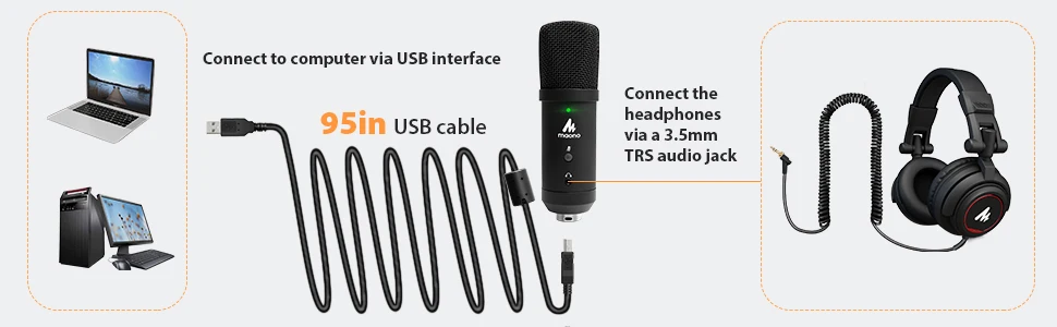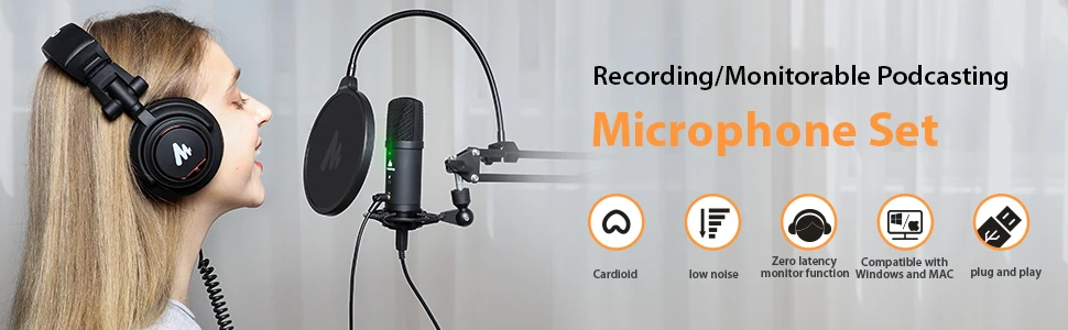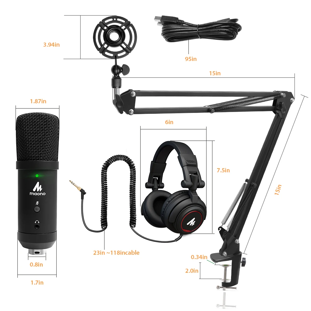 Конденсаторный USB микрофон MAONO PM401H, наушники для студийного монитора, 192 кГц24 бит, профессиональный микрофон для подкастинга для компьютера и Youtube