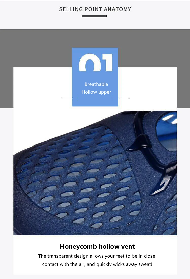 1. Вентиляционное отверстие с отверстиями в виде сот имеет прозрачную конструкцию, что позволяет ногам быть в тесном контакте с воздухом и быстро впитывать влагу и истощать влагу!