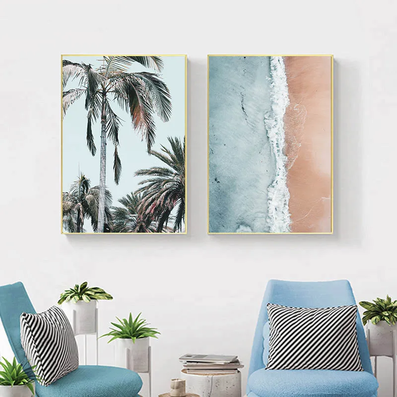 Плакат на холсте в стиле бохо, с изображением Морского Пейзажа, пальмы