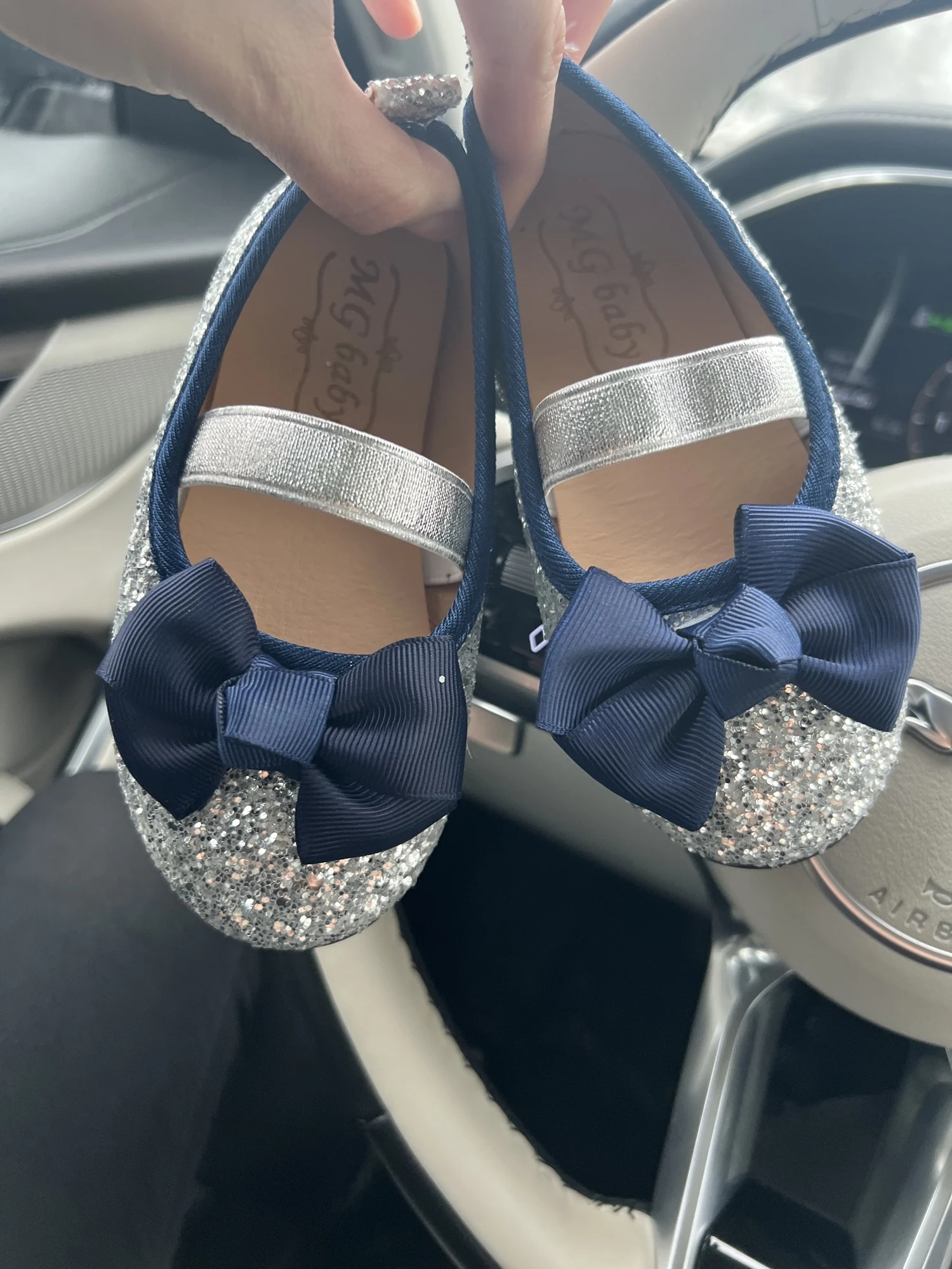 Детская кожаная обувь для девочек блестящая ткань с бантом детское ...