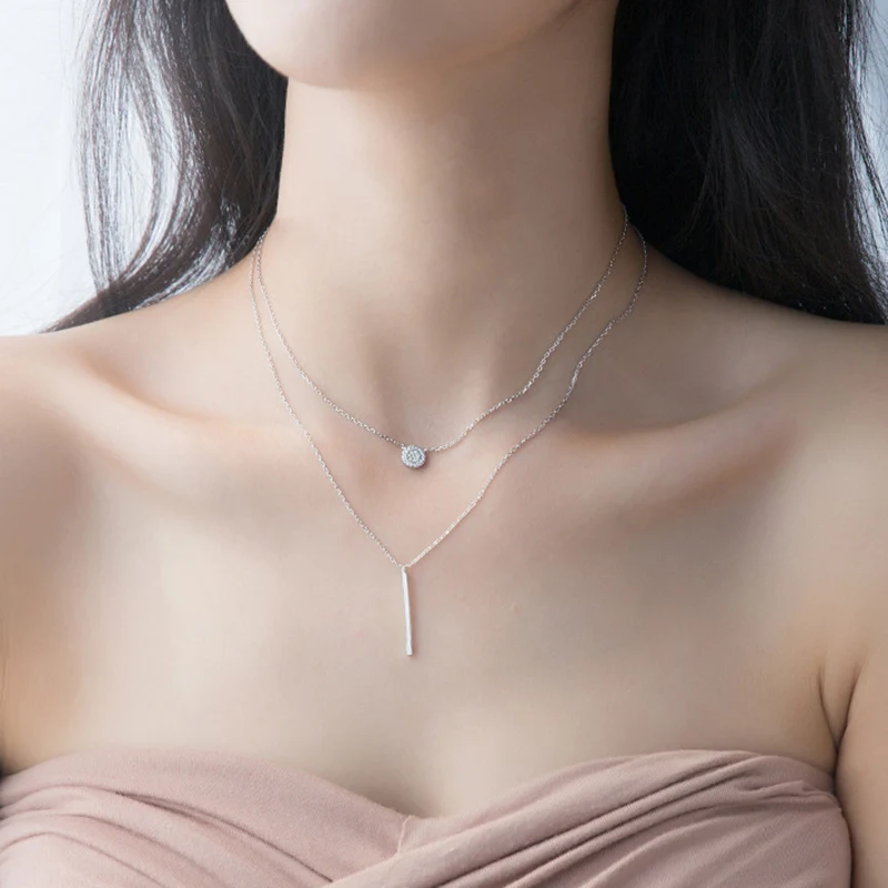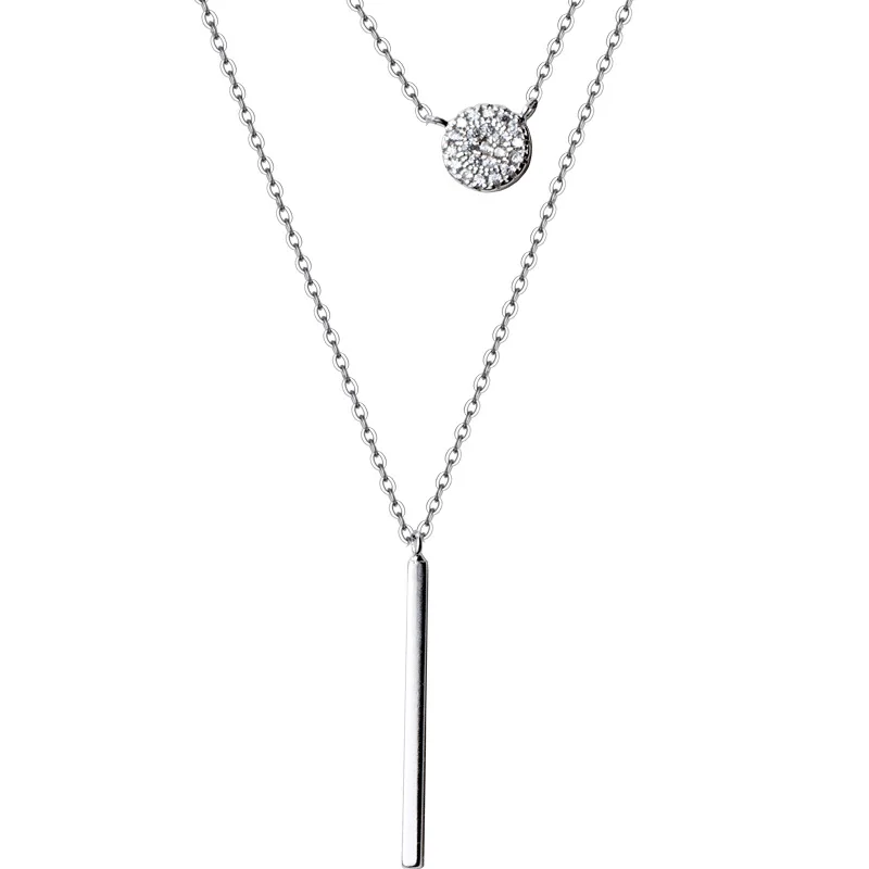 Элегантное Двухслойное женское ожерелье с подвеской-палочкой trustdave из стерлингового серебра 925 пробы с геометрическим дизайном DA1266