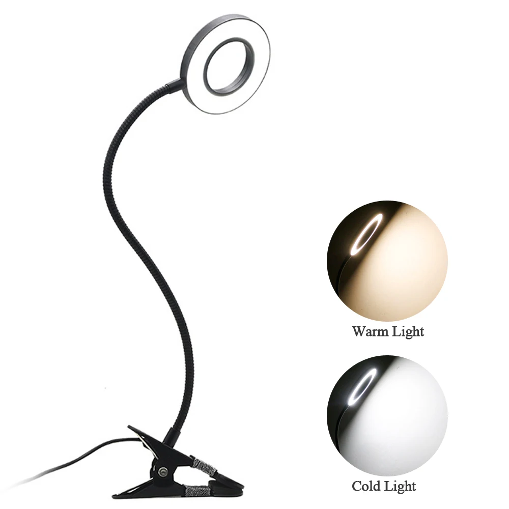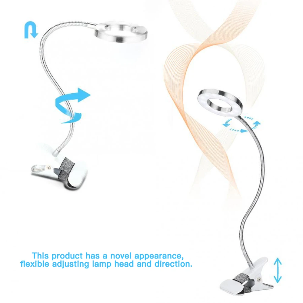 Настольная лампа с зажимом, настольная лампа с USB-разъемом светодиодный защиты глаз, светодиодная настосветильник лампа для чтения сгибаемый гибкий, настольная лампа для ногтей, татуировок, чтения красоты