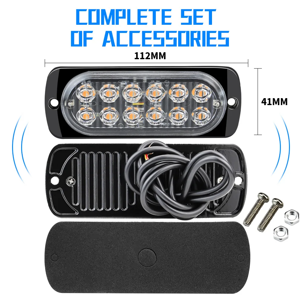 Особенности: 12 высокомощных светодиодный чипов с кристально чистым объективом для максимальной яркости. Водонепроницаемый, противоударный, низкое энергопотребление, простота установки. Встроенный радиатор обеспечивает постоянную производительность и длительный срок службы. Повышает безопасность вождения, избегайте дорожных аварий. Многофункциональность: Может использоваться Предупреждение ющий сигнал, опасность, маяк, DRL, боковой маркер, спасательный мигающий светильник. Применение: пикап, внедорожник, ATV, UTV, внедорожник, фургон, RV, вилочный погрузчик, лодка, морская. Характеристики: Тип: 4x Янтарный 12 светодиодный стробоскоп аварийный Предупреждение светильник бар Материал: алюминиевый черный корпус кронштейн + прозрачные линзы Светодиодный чип: 12 COB светодиодный Мощность: 36 Вт Напряжение: 12-24 В постоянного тока Цвет: желтый и янтарный Цветовая температура: 3000K Рабочая температура: -40 ~ 60 ℃ Функция вспышки: 18 режимов мигания Степень водонепроницаемости: IP67 Срок службы: более 80000 часов Размещение на транспортном средстве: спереди, сзади, R/L Размер посылка: 18*16*3 см Посылка Вес: 250 г Посылка включает в себя: 4x12 Янтарный светодиодный аварийный стробоскоп-светильник 4 х Противоударная защитная накладка 8 x Упаковка монтажного оборудования