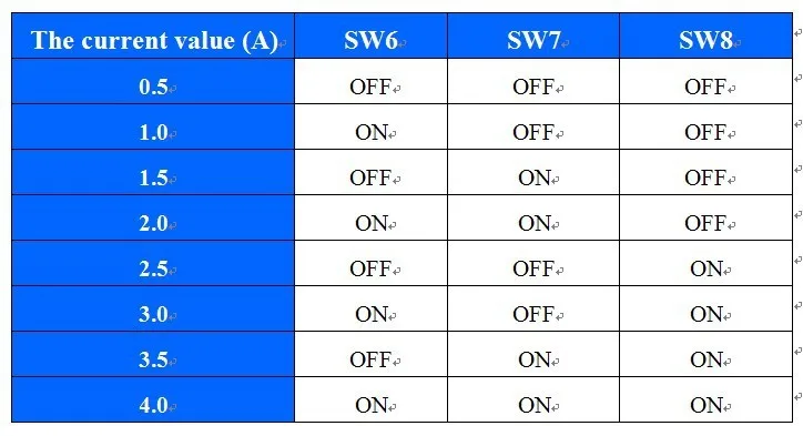 Примечание:Настройки тока после запуска двигателя в течение 15-30 минут, если температура двигателя слишком высокая, вы должны уменьшить настройки тока. Если Настройка тока двигателя, выходной крутящий момент двигателя недостаточно для улучшения условий рассеивания тепла, чтобы гарантировать, что двигатель и привод не будут горячими.