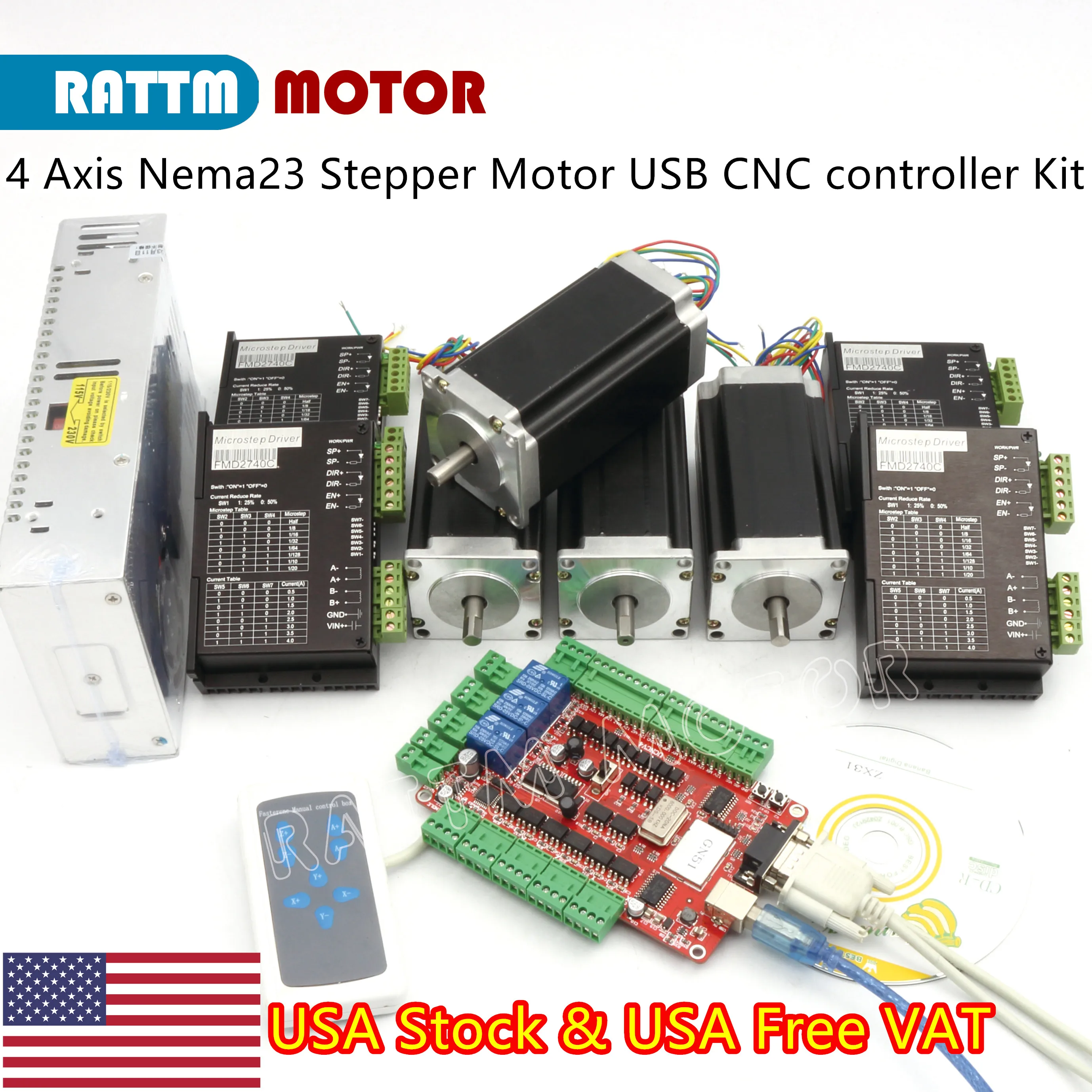 EUСША Free 4 оси USB ЧПУ комплект Nema 23 шаговый двигатель (двойной вал) 425oz-in 3A FMD2740C драйвер 40V 4A 400 Вт 36В тормозной Мощность питания