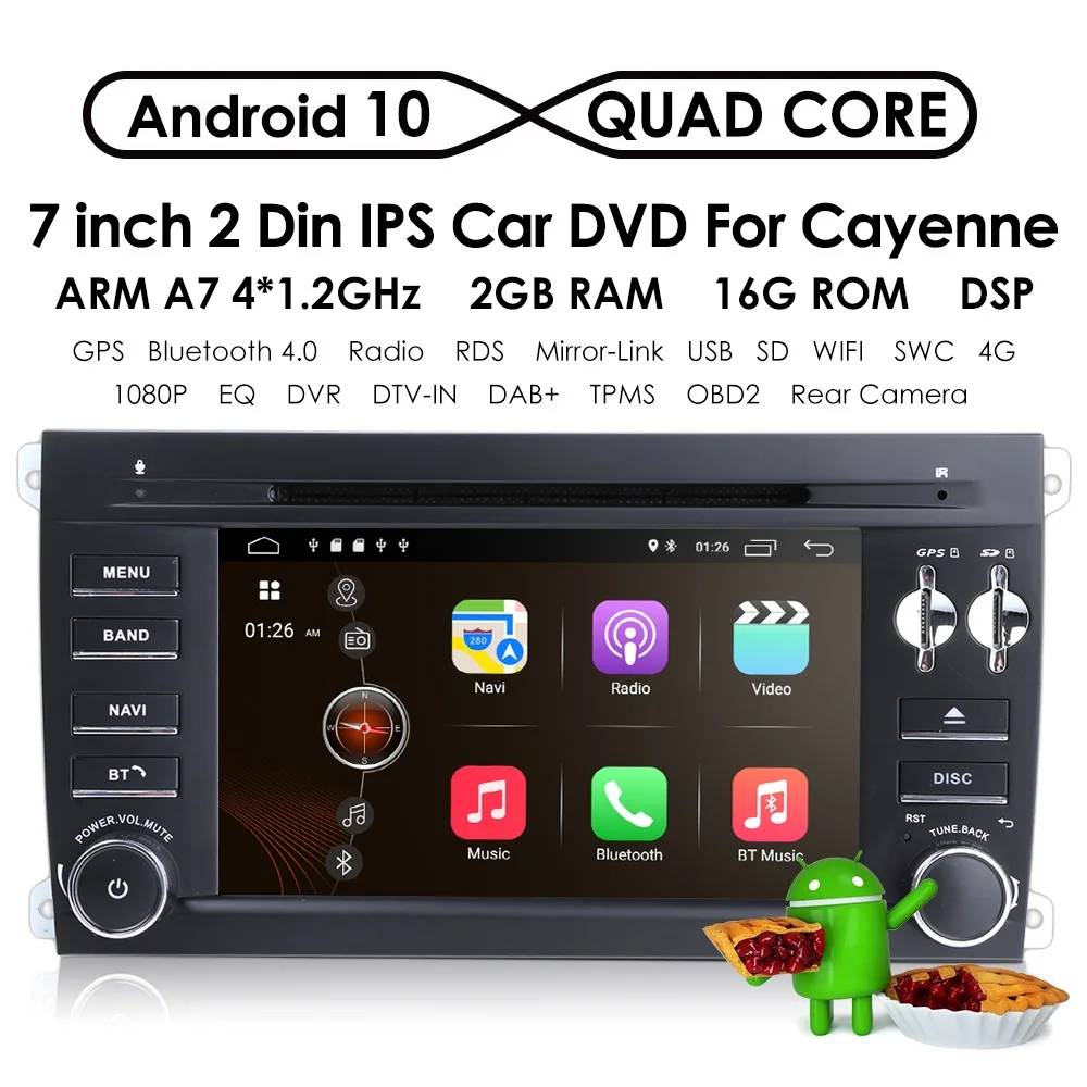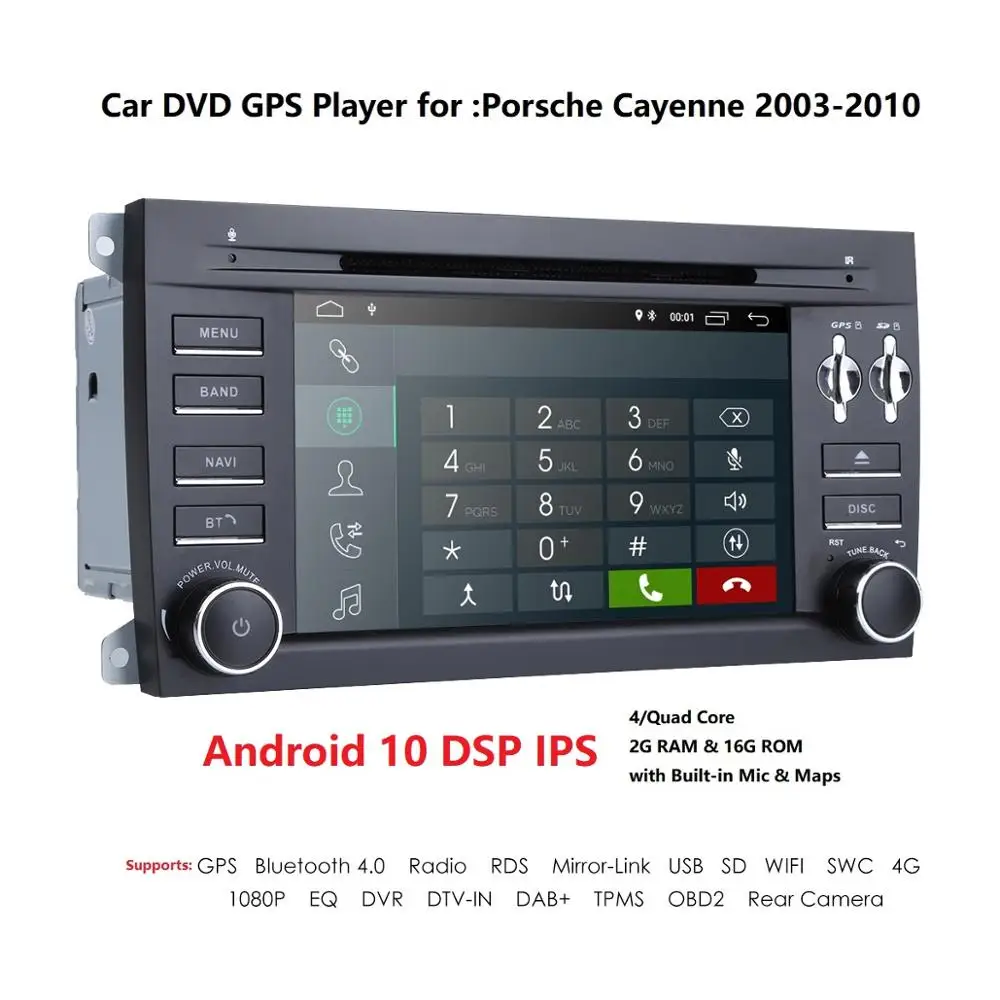 Автомобильный радиоприемник, 2 Din, Android 10, IPS, для Porsche Cayenne 2003-2010, GPS-навигация, WIFI, RDS, DSP, 7-дюймовый сенсорный экран, мультимедиа