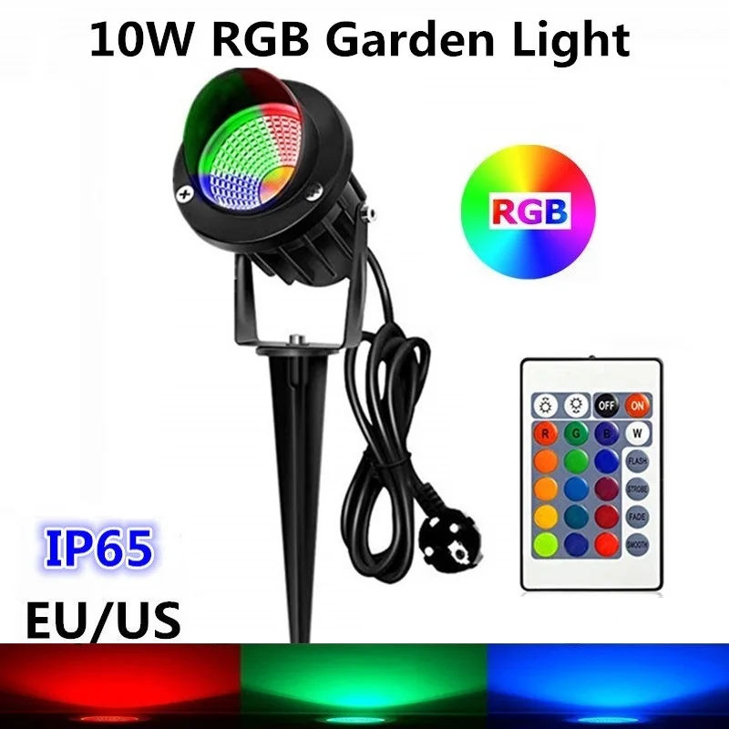 Уличный светодиодный садовый светильник COB, водонепроницаемый точечный светильник для газона с дистанционным управлением, IP65, AC85-265V ЕССША, 10 Вт