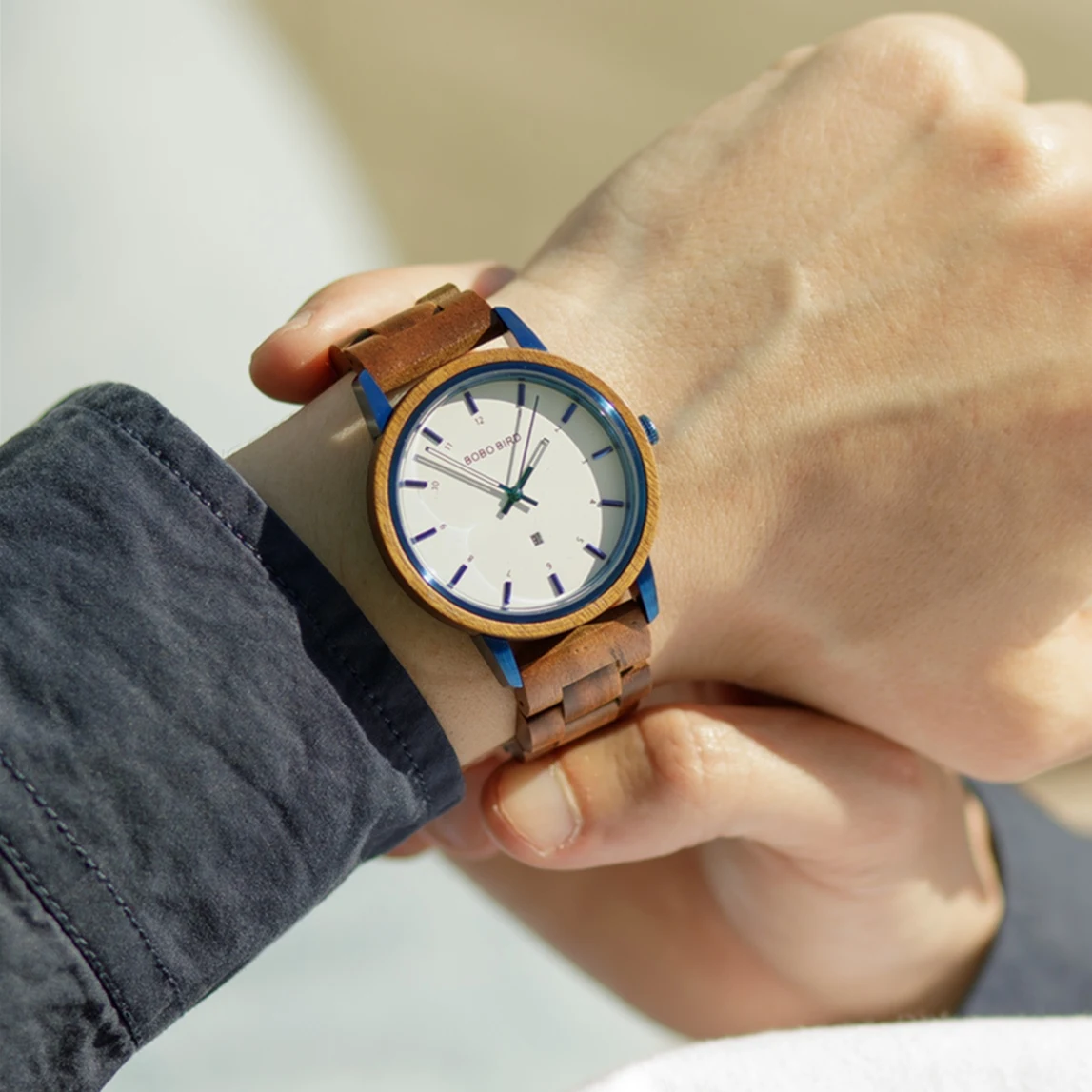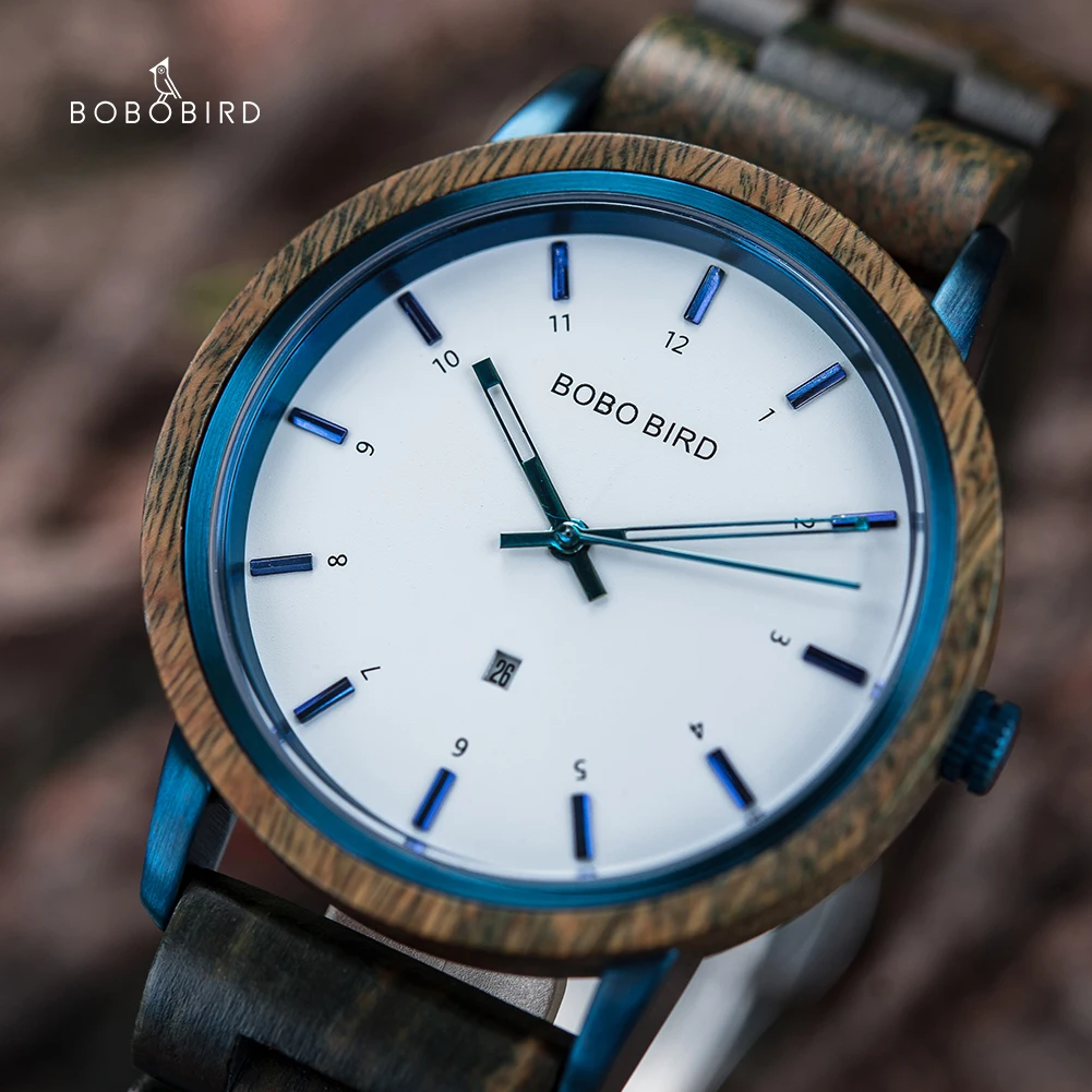 Мужские часы BOBO BIRD, деревянные кварцевые наручные часы, мужские часы с автоматической датой, роскошные женские и мужские часы, подарок с логотипом на заказ, Прямая поставка
