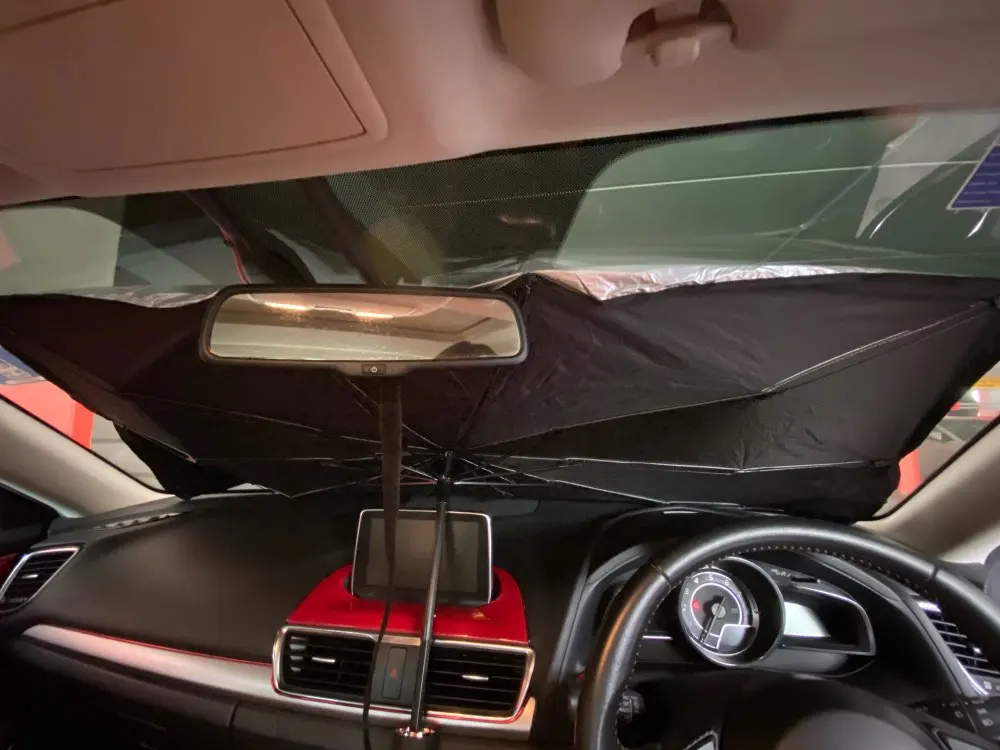 Очень хорошая идея. Но на реальных автомобилях больше нет одного зеркала... Там есть датчики света, датчики дождя, камера .. Таким образом, невозможно установить эту защиту от солнца между ветровым экраном и зеркалом. Таким образом, зеркало и все датчики не защищены и получают больше тепла из-за небольшого пространства между этим солнцезащитным козырьком и ветровым стеклом. Я afrait это действительно самое худшее... для этих компонентов. Я примерил 2 автомобиля, та же проблема. Поэтому я не буду им пользоваться.