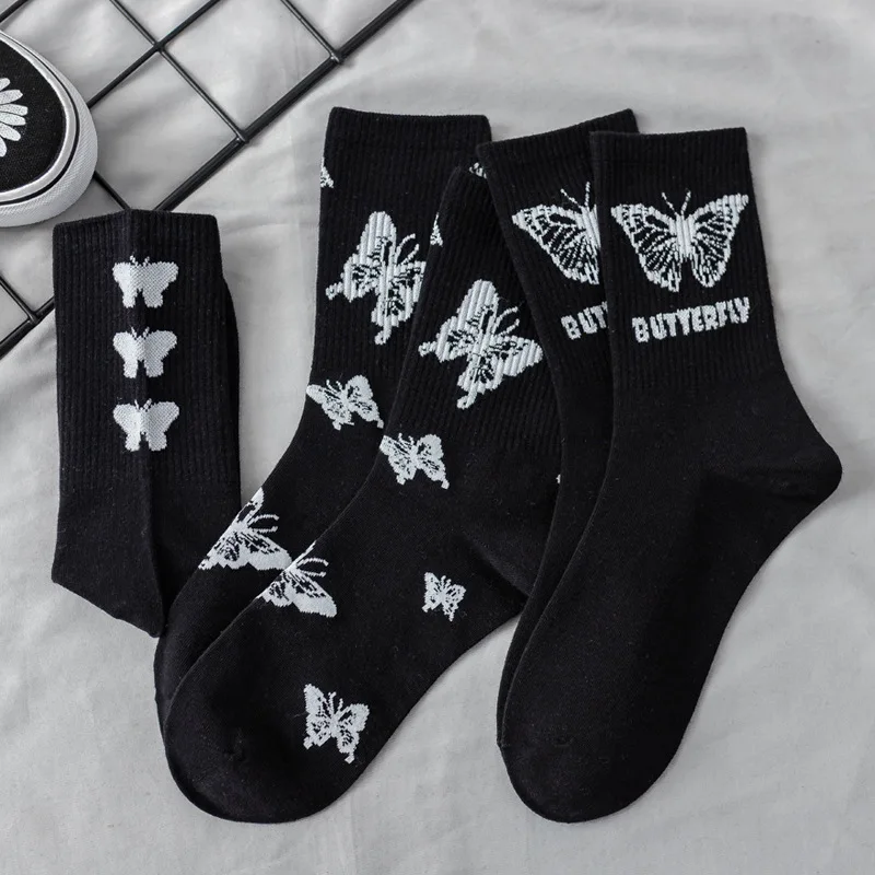 Носки женские с рисунком бабочки, милые модные дамские носки в стил...