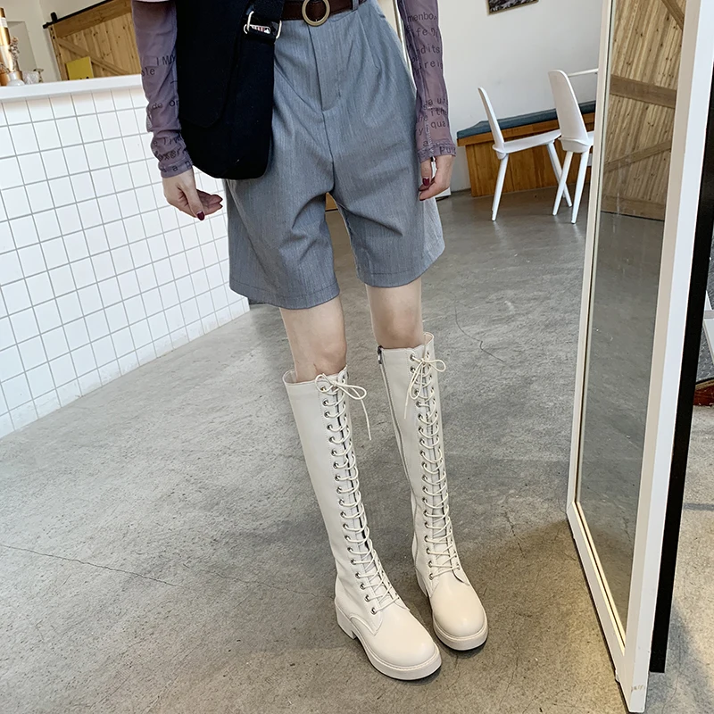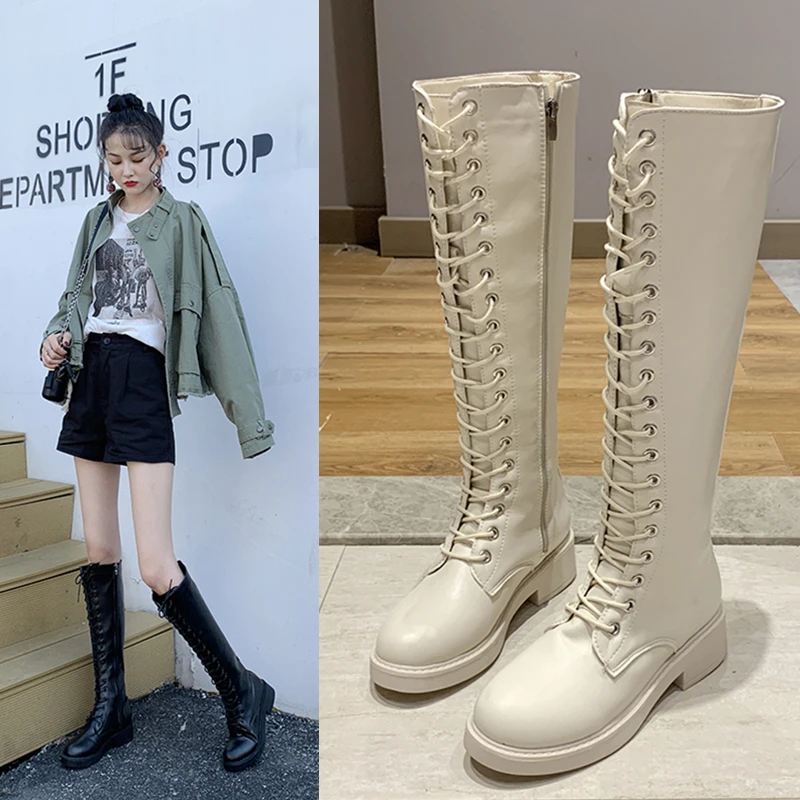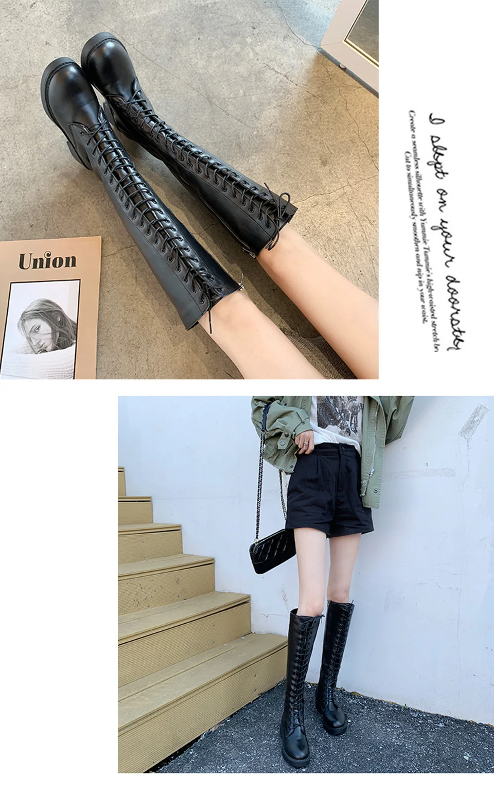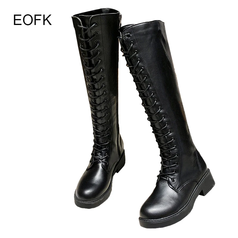 EOFKзимние женские сапоги выше колена; Черные короткие сапоги из плюша на шнуровке; Водонепроницаемые высокие сапоги ; Женские теплые сапоги