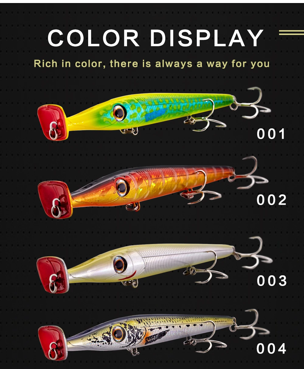 1. Длина: 150 мм2. Вес: 20 г3. Действие: topwater4. Мишени рыбы: голубики, морские раковины, заргана, Гарфиш