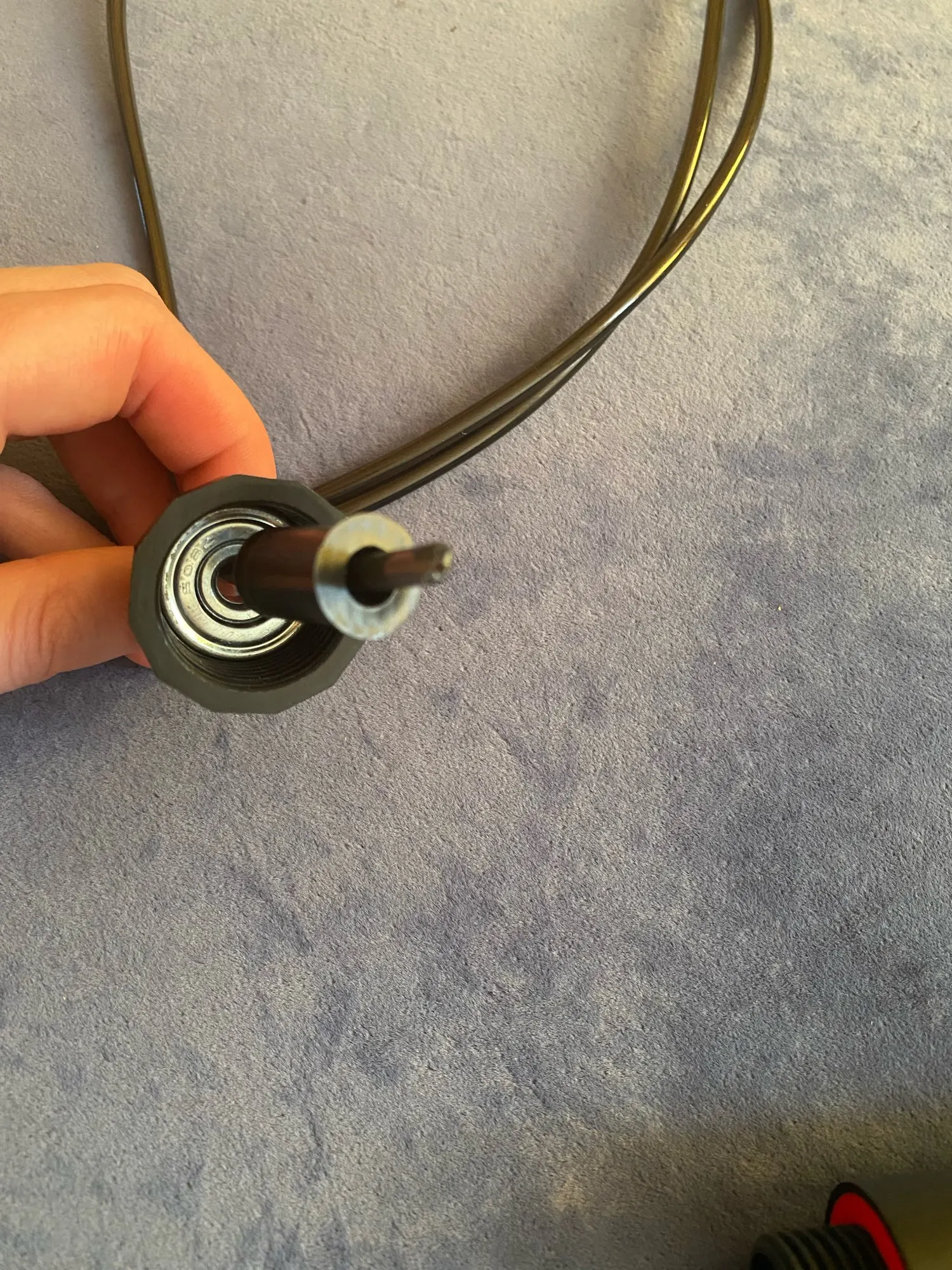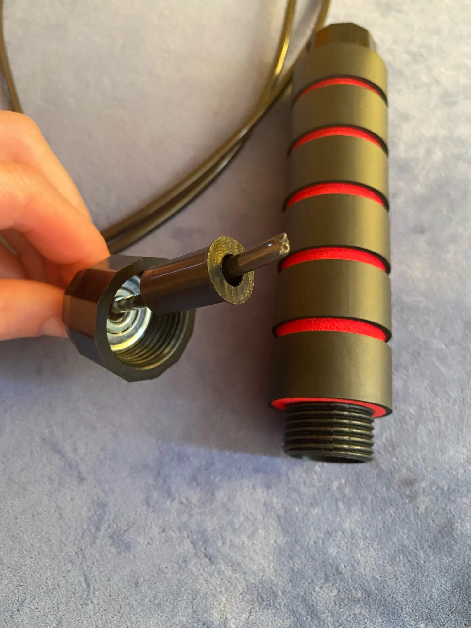 Доставка быстрая, денег своих стоит. Ручки лёгкие(на любителя), удобные для моей не самой маленькой длани, подшипники на месте. Под мой рост 187см длина троса подходит, но можно было бы и побольше, так как запаса нет совсем. Трос силиконовый (вроде) с металлический сердцевиной.
