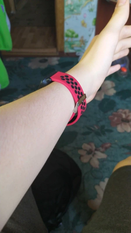 Выглядит не плохо, лучше чем родной. Из за шероховатой поверхности набирает на себя пыль. Рука не потеет. Постоянно слетает тренчик, на родном ремешке их было два, что совсем не мешало слетать обоим. В общем норм. Доставка быстрая.