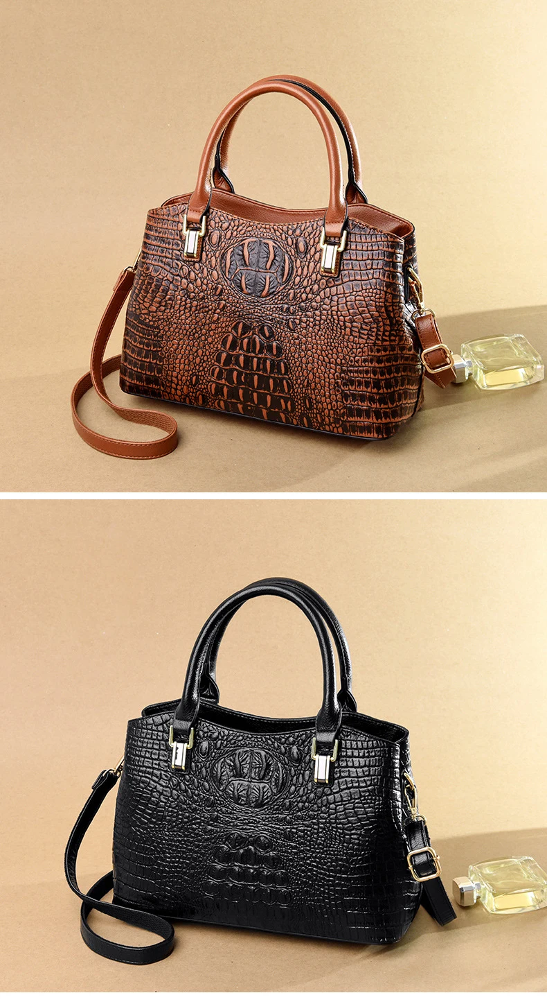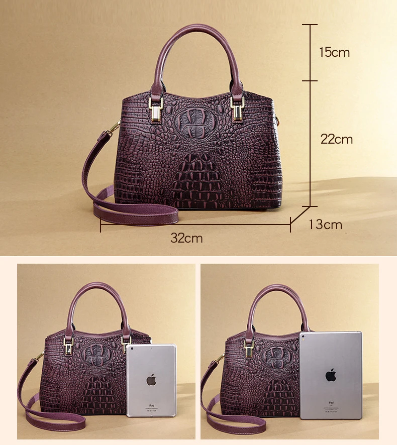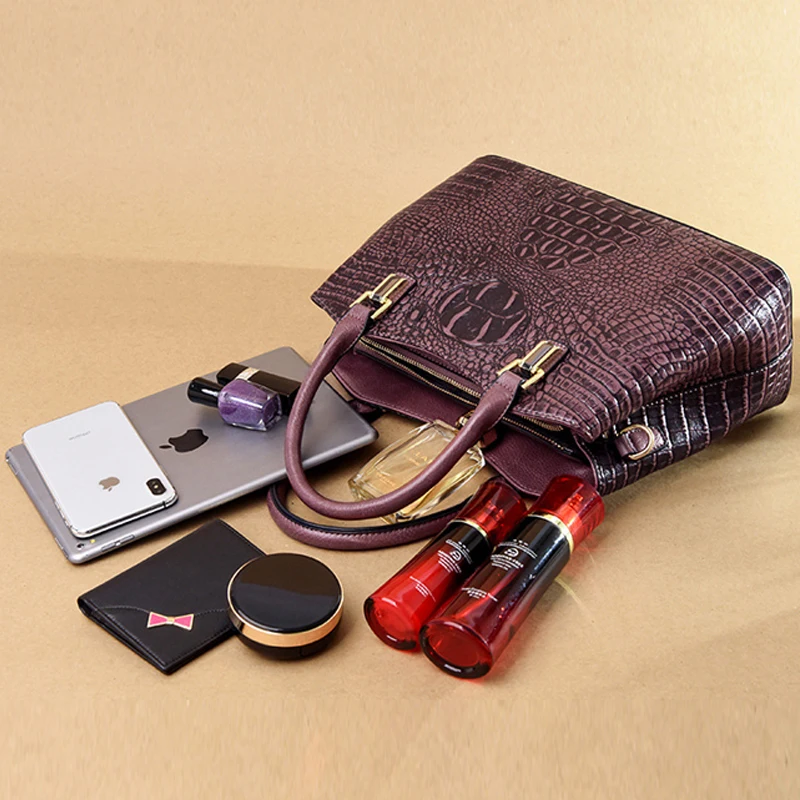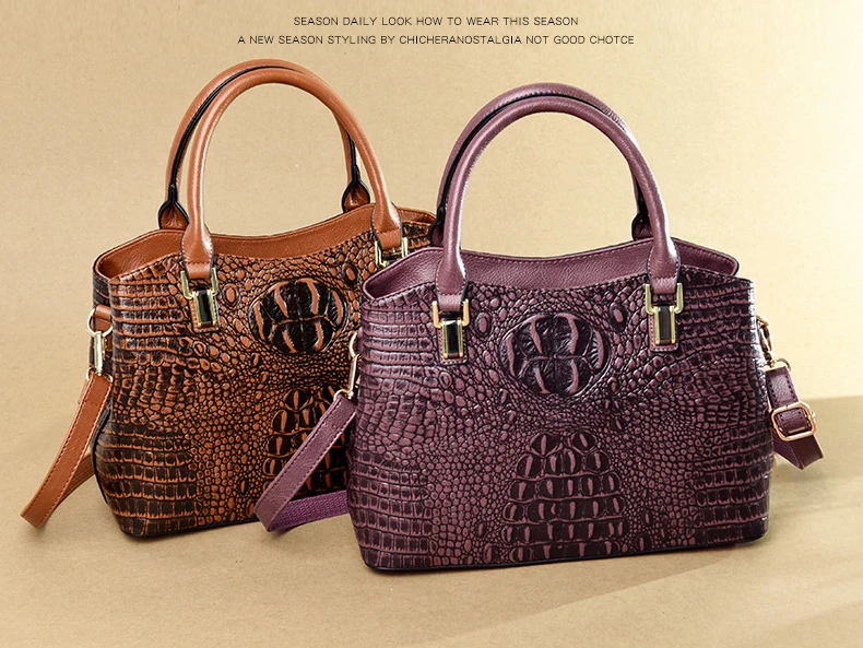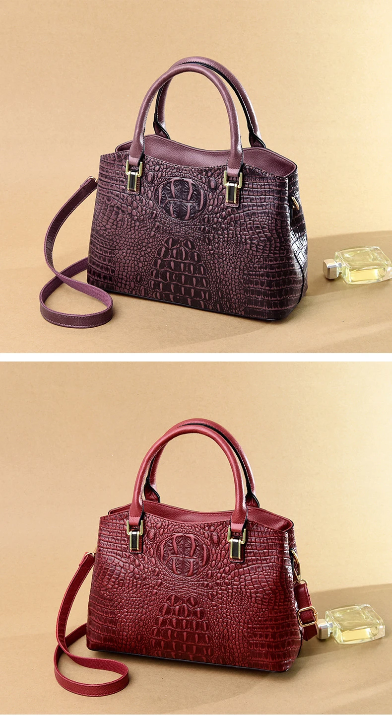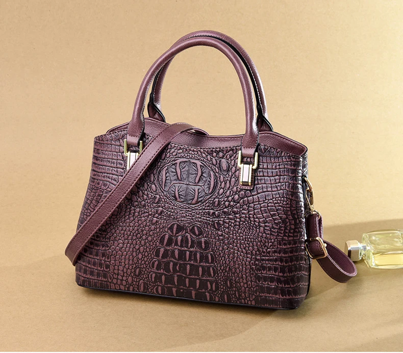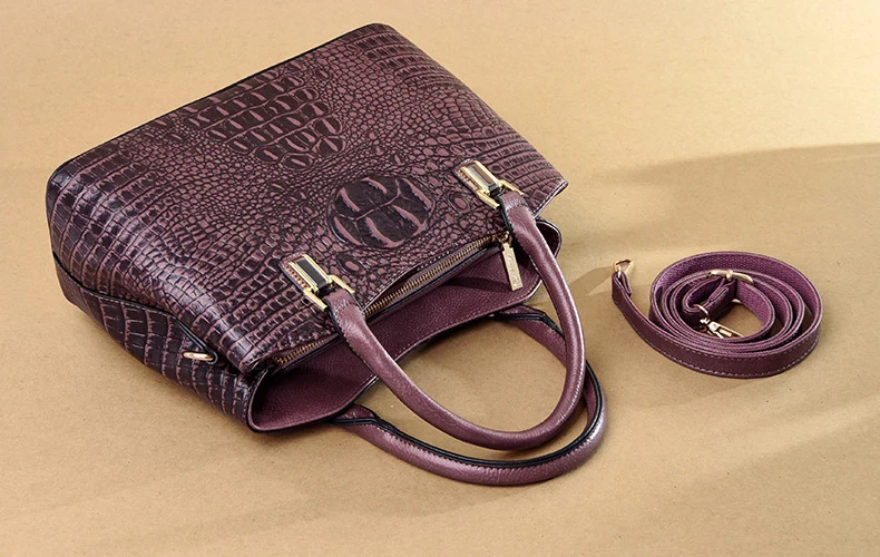 Сумка женская, кожаная, с узором под кожу крокодила