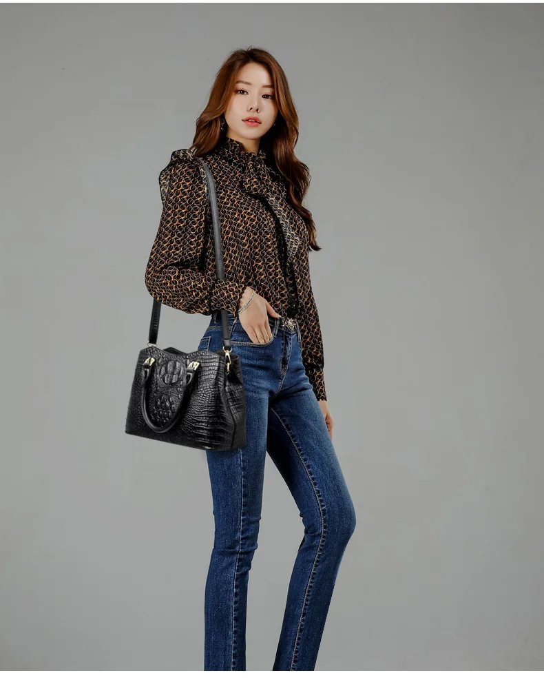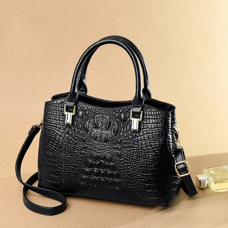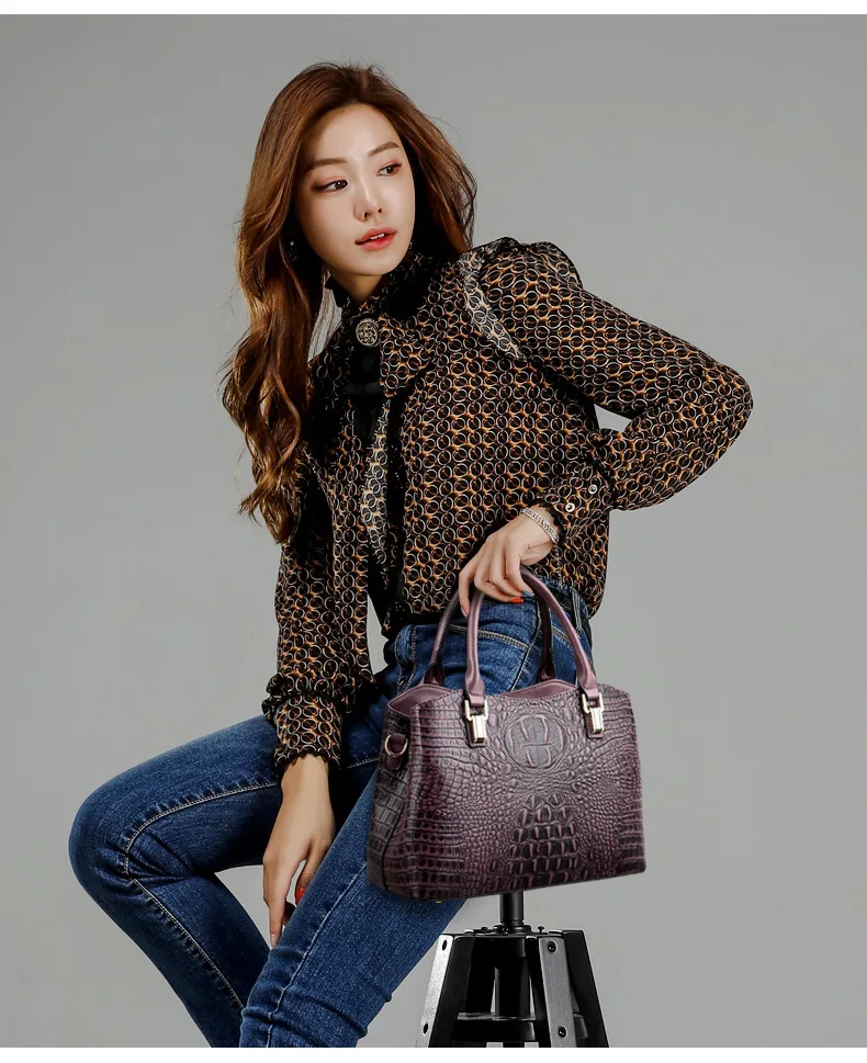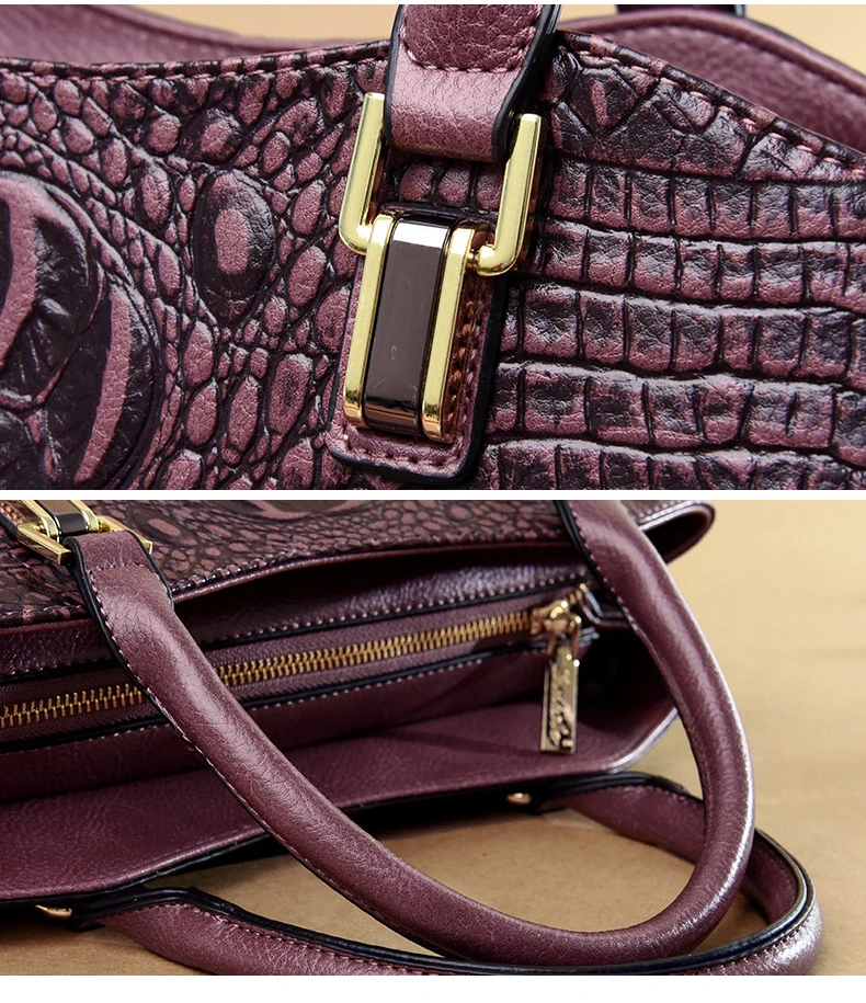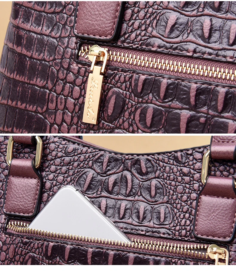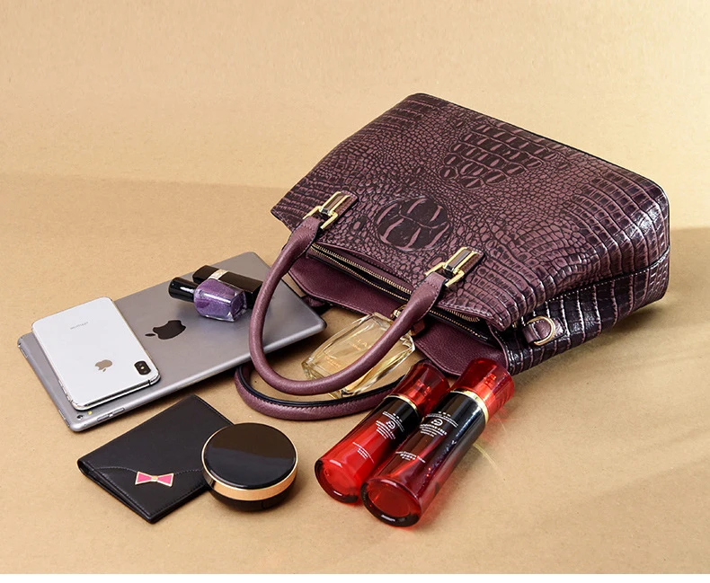 Сумка женская, кожаная, с узором под кожу крокодила