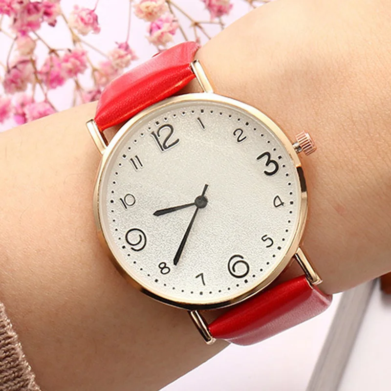 Модные женские повседневные кварцевые наручные часы с кожаным ремеш...