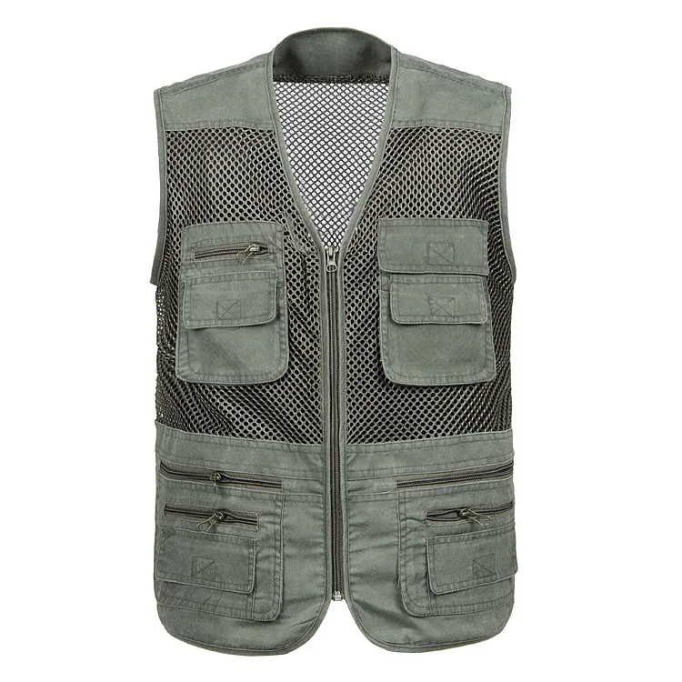Жилетка рыболовная Мужская сетчатая с V-образным вырезом, свободная куртка без рукавов, Зеленый Спортивный Топ, верхняя одежда, большие размеры 4xl, на лето