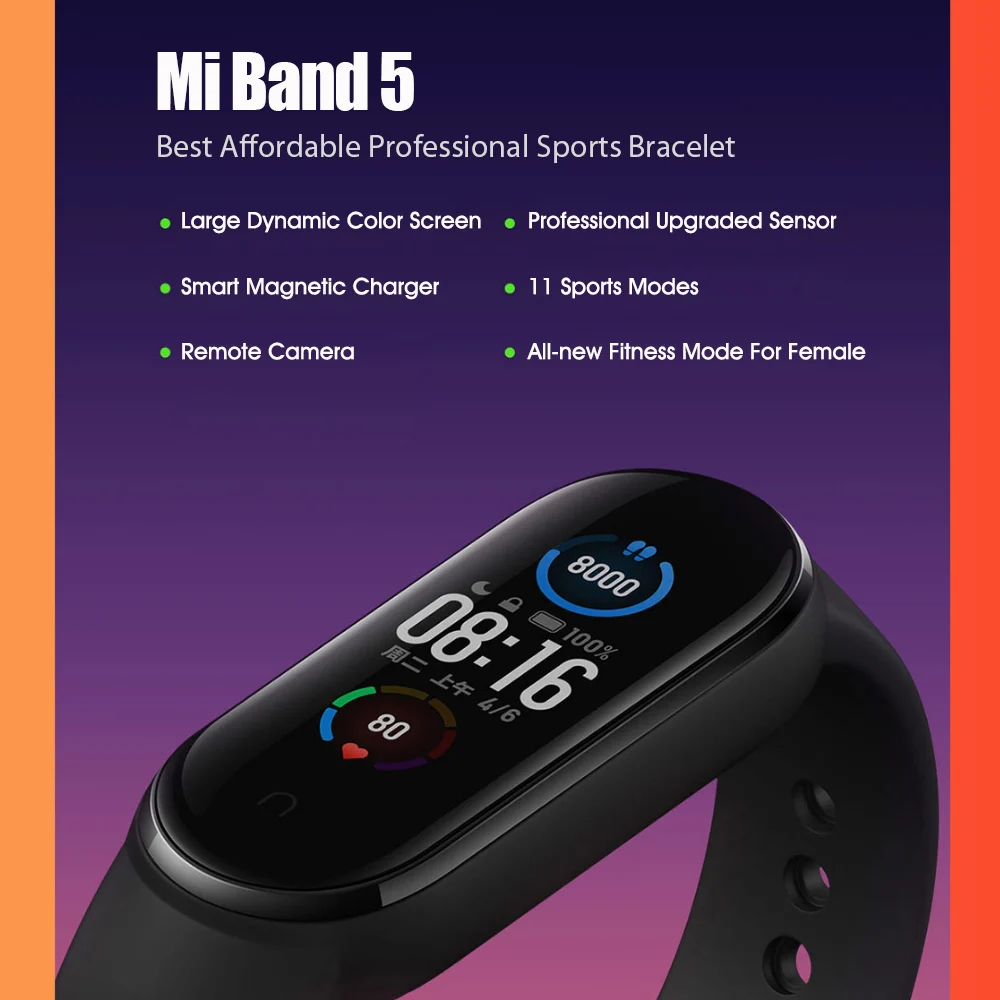Xiaomi Mi Smart Band 5 динамический цвет 11 спортивных режимов Магнитная Зарядка BT 5,0 Удаленная камера фитнес спорт здоровье трекер Браслет