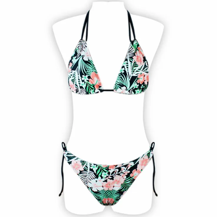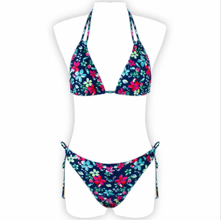 2020 летние женские сексуальные цветочные комплекты бикини с V-образным вырезом, со шнуровкой, халтер, бюстгальтер с вкладышами пуш ап, купальник, трусы с низкой талией, пляжная одежда