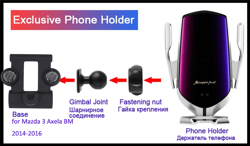 Мобильный телефон держатель для Mazda 3 Axela BM 2014 2015 2016 беспроводной зарядный телефонный Кронштейн Поддержка аксессуары для iPhone 6 7 8