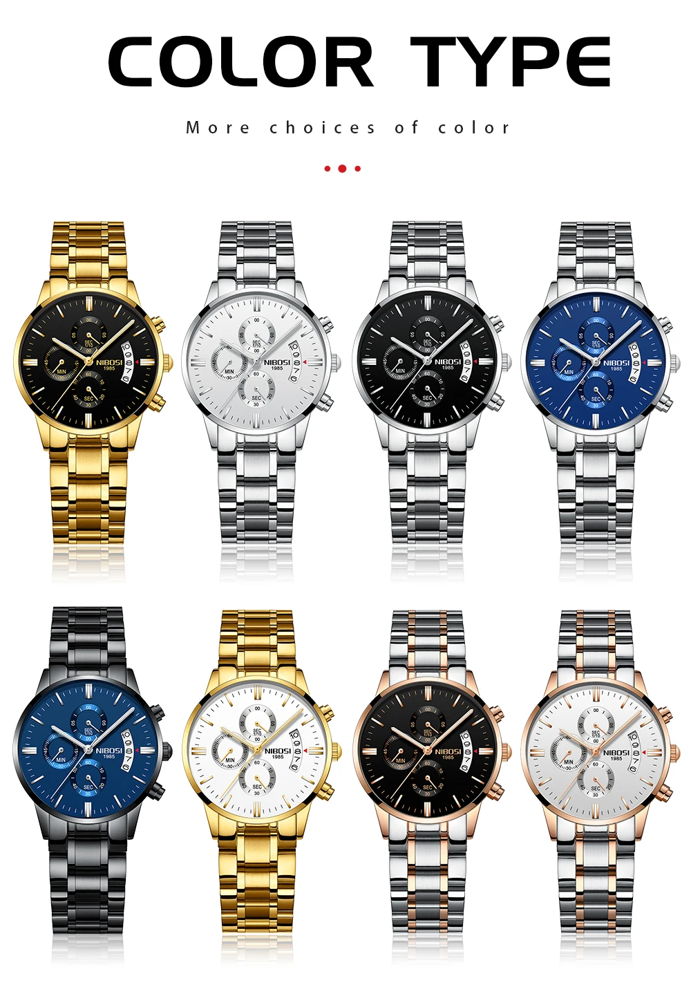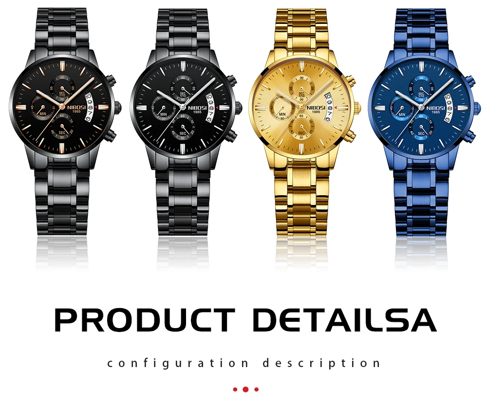 Модные роскошные женские часы NIBOSI из нержавеющей стали, золотые ...