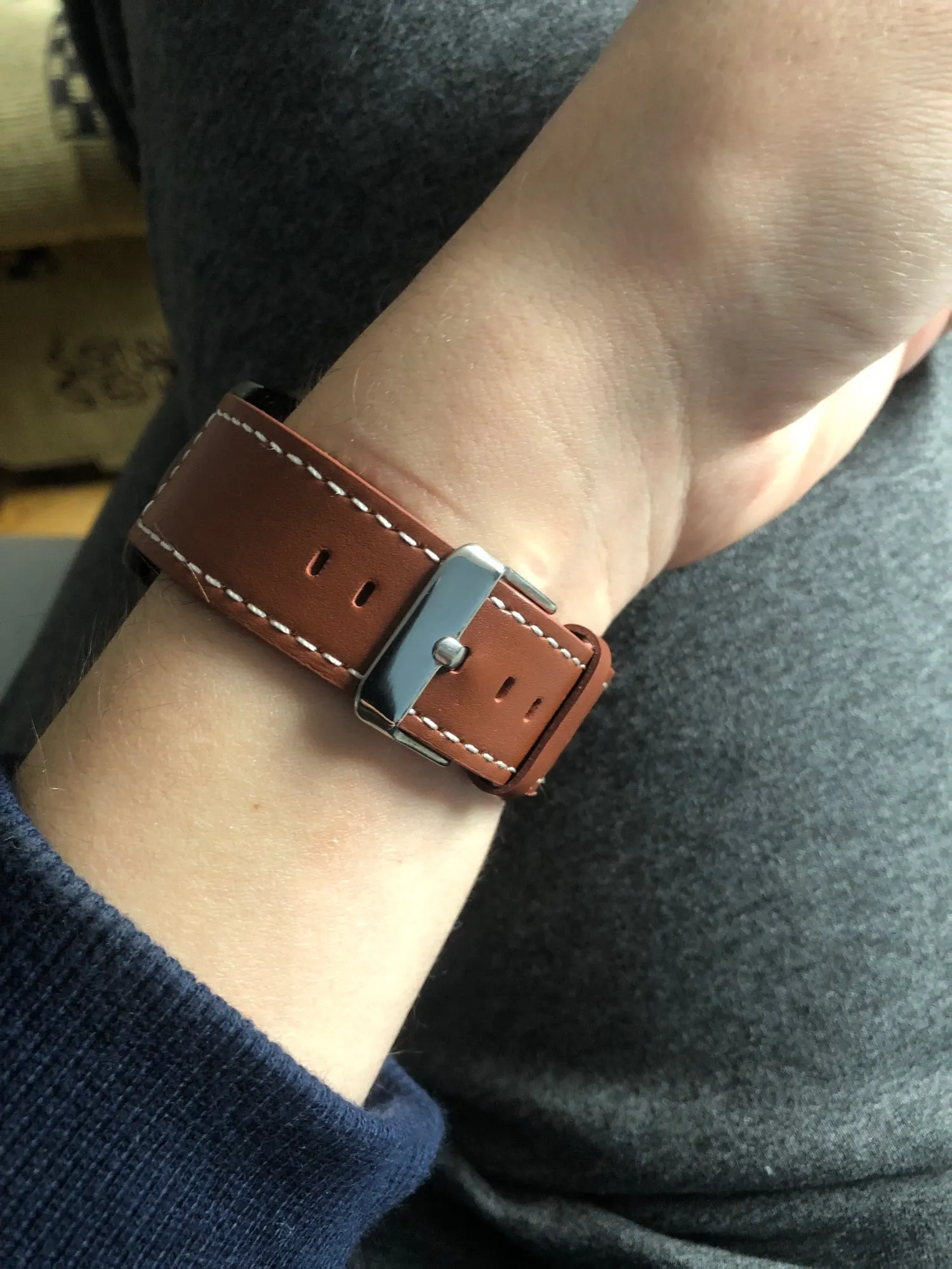 Продукт хороший. Стоит своих денег, но на самом деле выглядит лучше, чем на ощупь (эмотически! На ощупь очень хорошо). И, по моему личному мнению, этот коричневый ремешок не выглядит хорошо с черными часами, поэтому выбирайте smart.