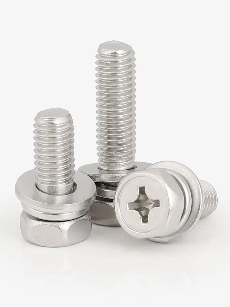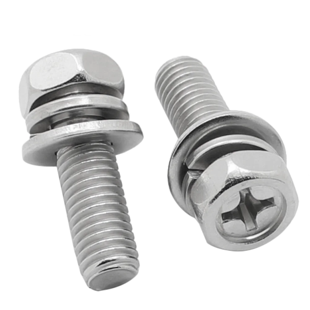 10 шт. M4 M5 M6 M8 Шестигранная крестообразная головка болт Phillips шестигранные винты плоский пружинный комплект шайб 304 нержавеющая сталь L = 12-50 мм