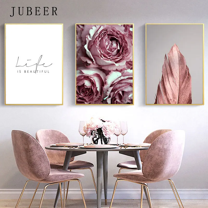 Настенные постеры в скандинавском стиле с цветами, Розовые настенные художественные картины на холсте, картины с любовью для дома, украшения для гостиной