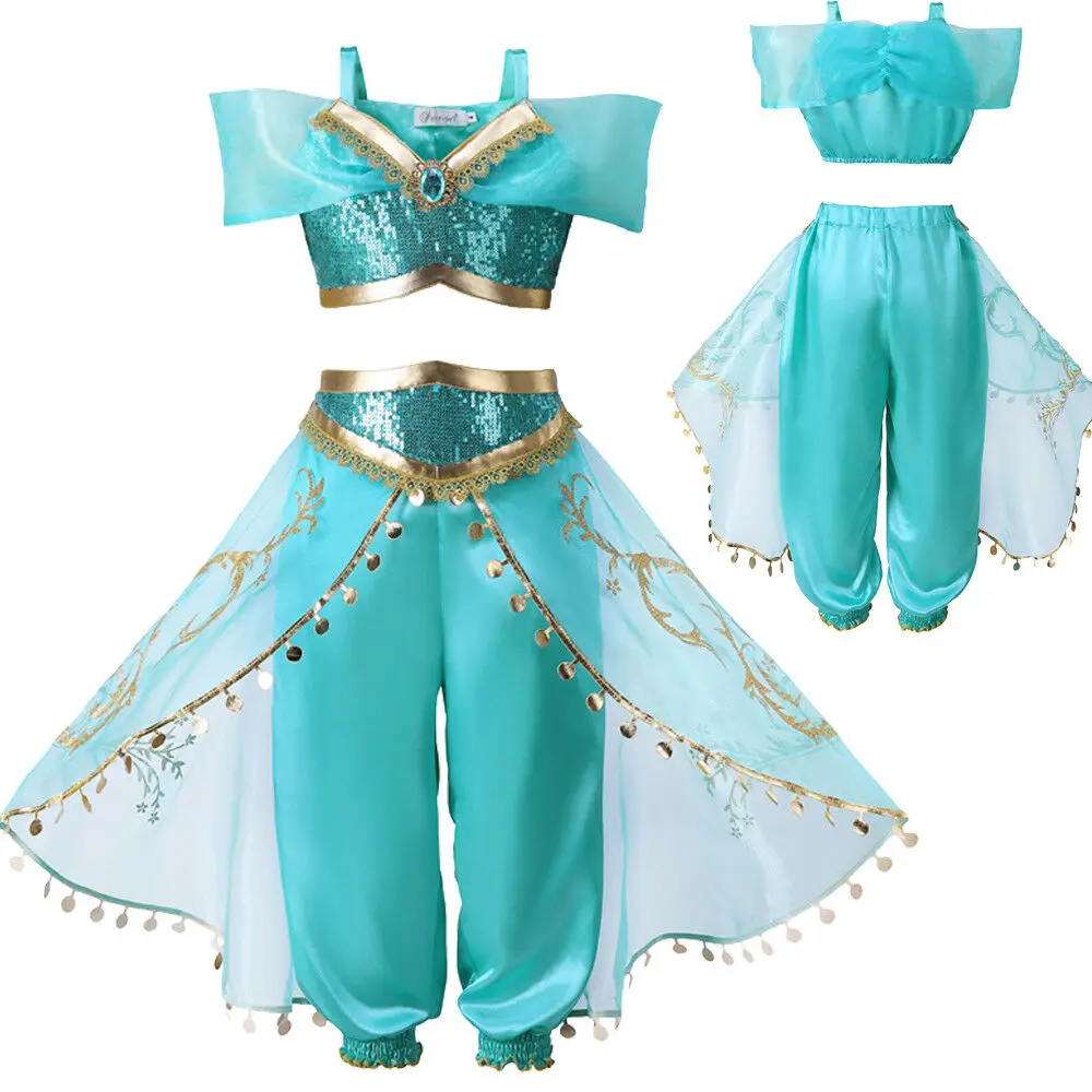 Девушки Популярные милые одеваются Дети Хэллоуин Рождество принцесса Аладдин Жасмин костюм для детей танец живота платье